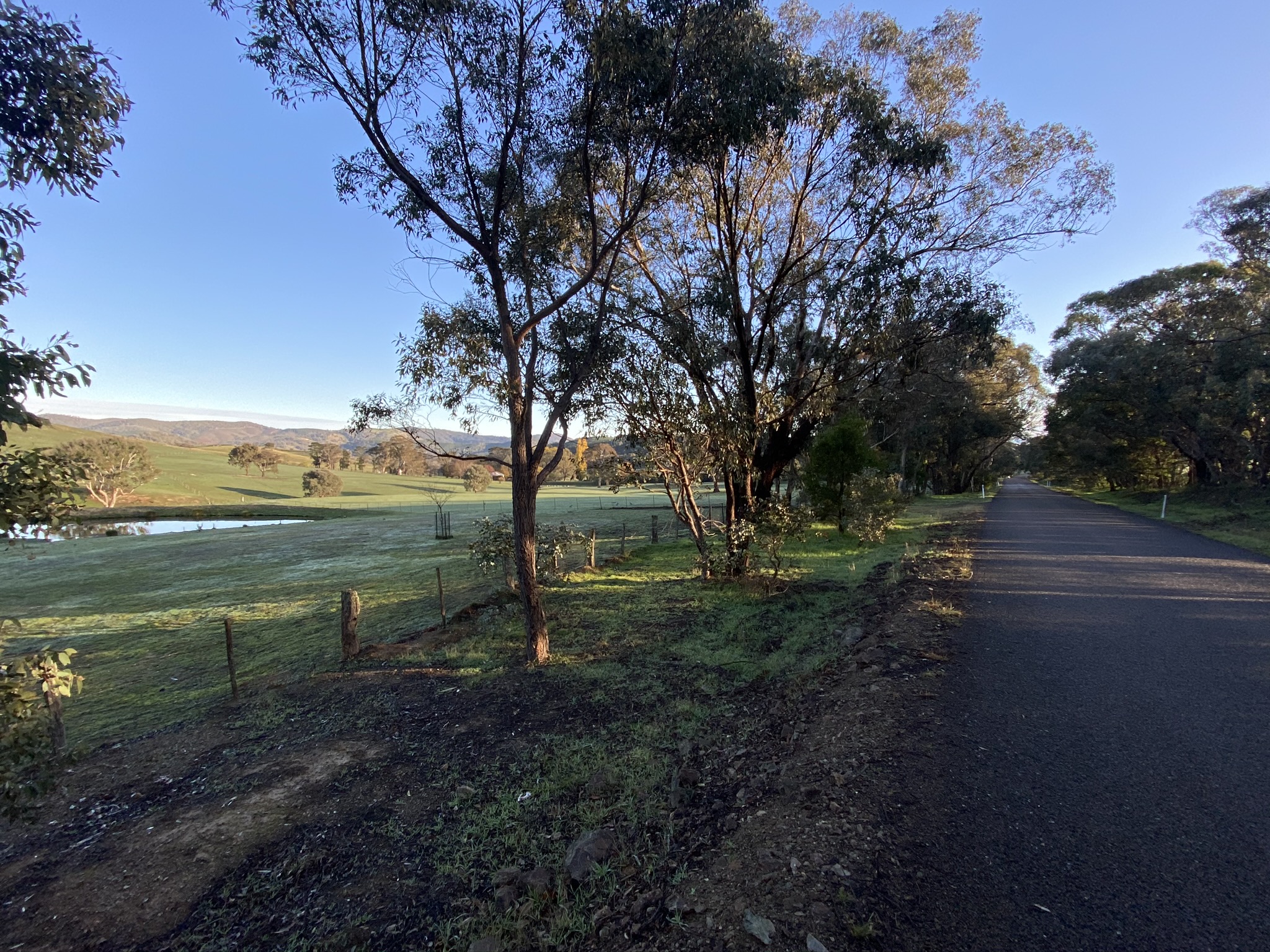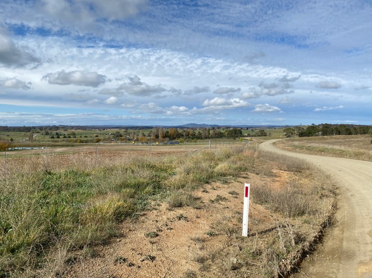 Dog Trap Road is a beautiful country gravel road that is normally well maintained. After around 12km of rolling hills, you know that Murrumbateman is approaching when you can see rural lot numbers marking where Canberra commuters will perhaps soon be taking up residence. Soon you can be back on the tarmac at Isabel Drive and running into central Murrumbateman.