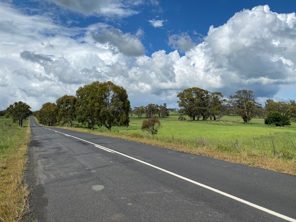 This is not a difficult ride – generally flat and smooth. Heading out of Orange, the countryside soon emerges along Huntley Road – a route that receives limited traffic. Like all routes that have limited verge, the route also benefits from generally good visibility for passing traffic.