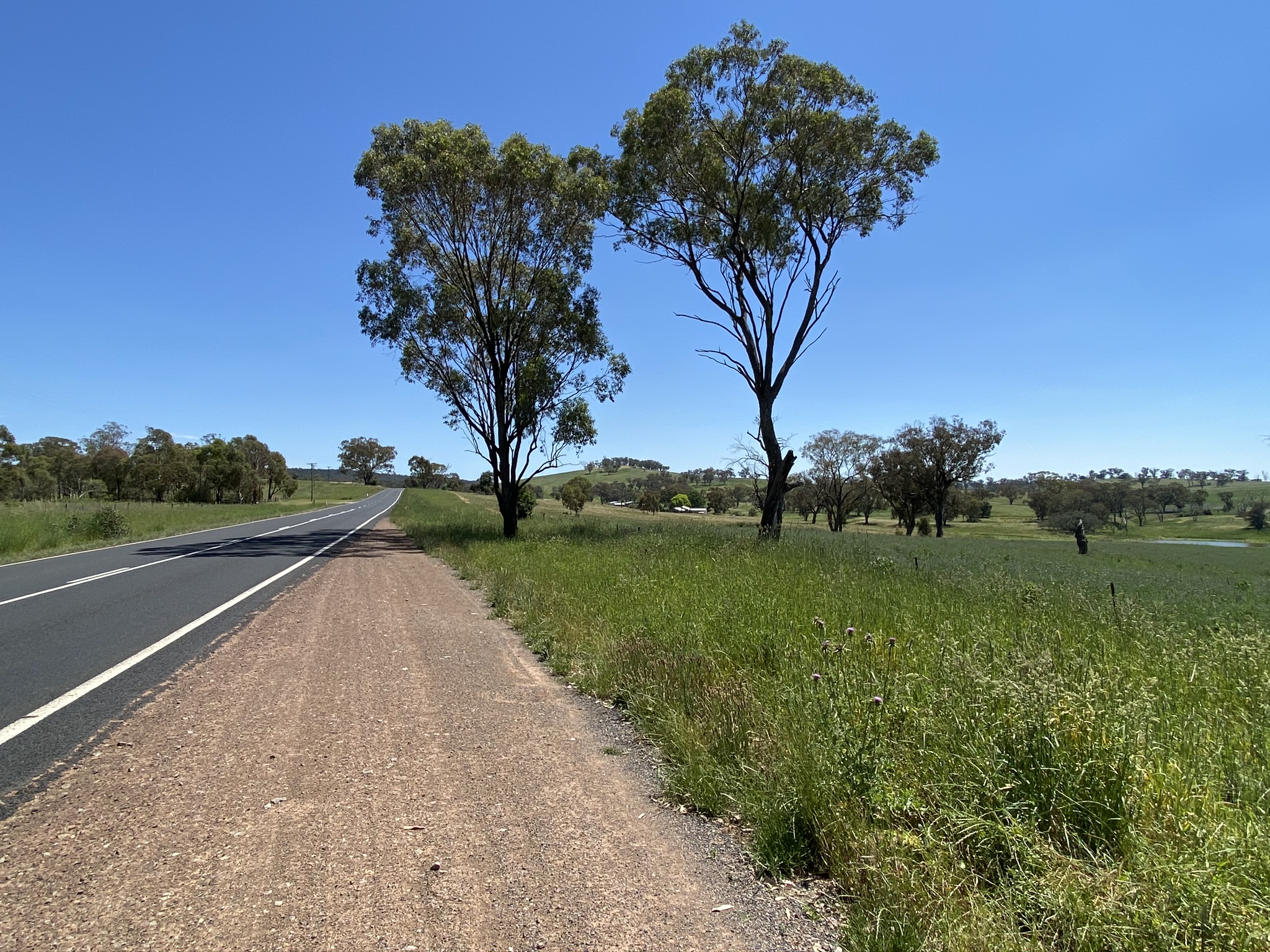 Departing town, there is a short stretch on the Mitchell Highway. I am not a fan of cycling on highways unless it is absolutely necessary or there is a massive verge. Here the verge is adequate, and also visibility is good for any traffic that needs to pass.