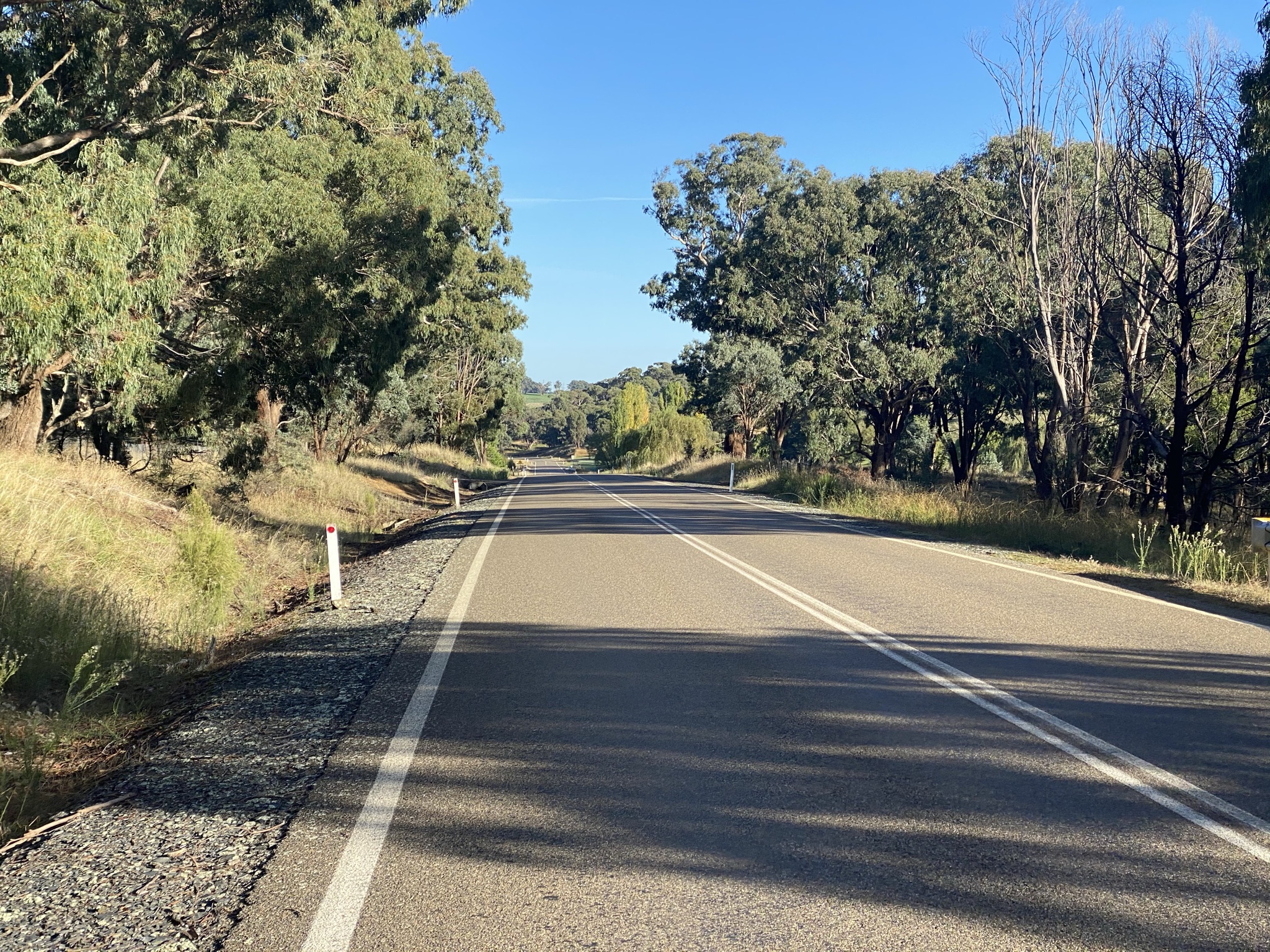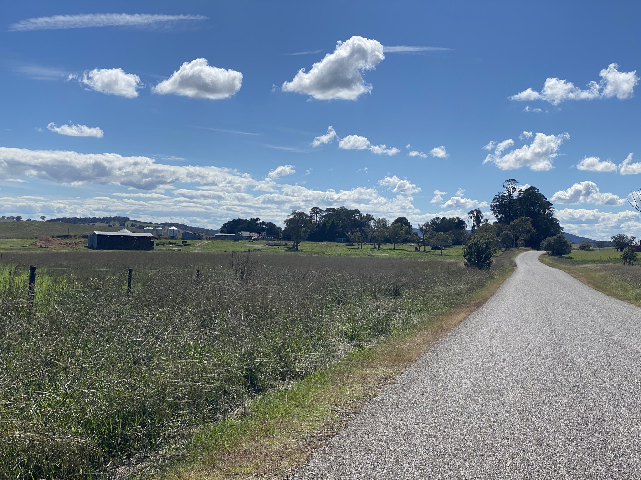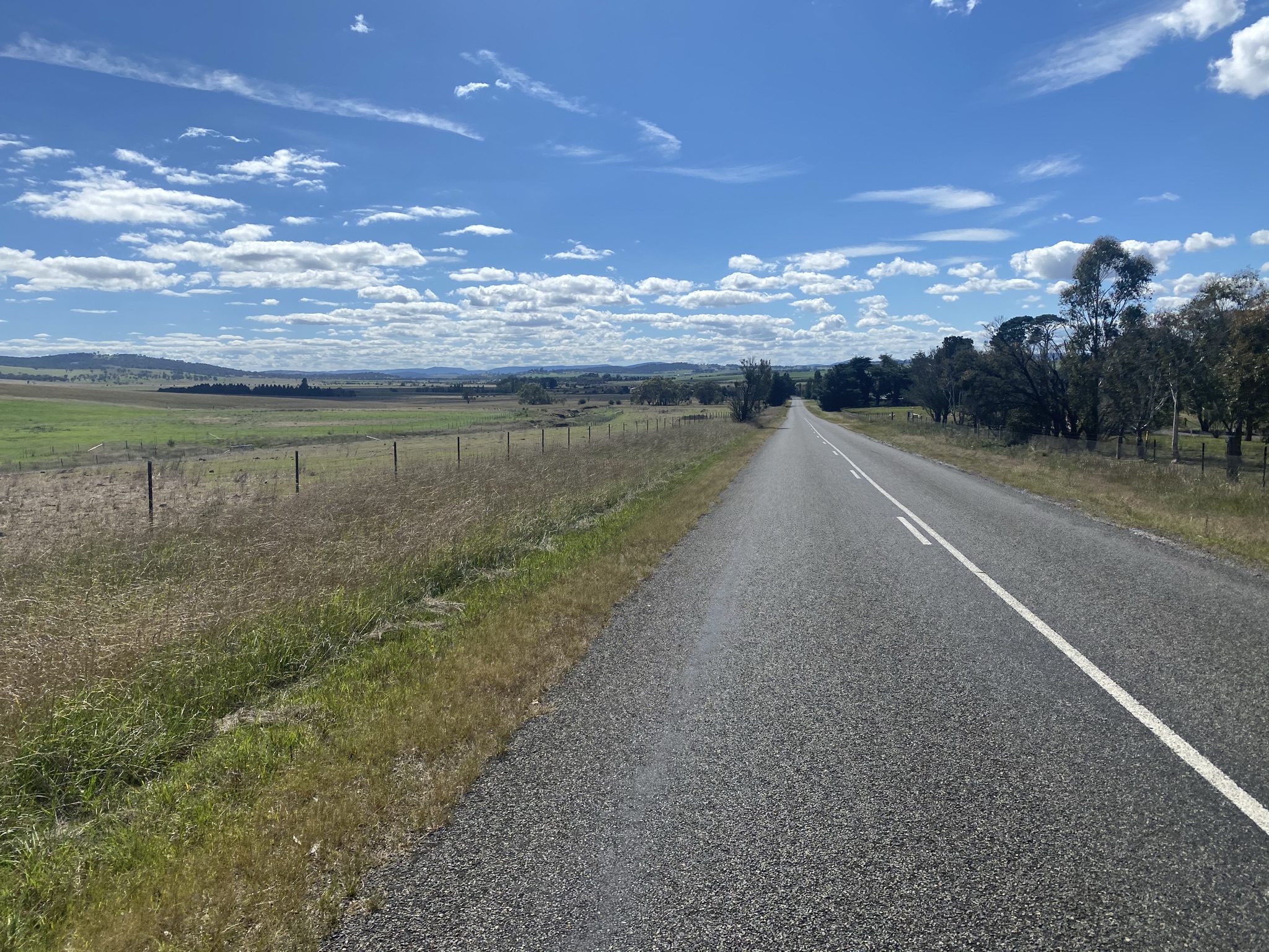 Heading out of Crookwell on Binda Road involves a climb. Nice start. This is, however, a prelude to a mostly downhill run of around 35km to the Lachlan River.