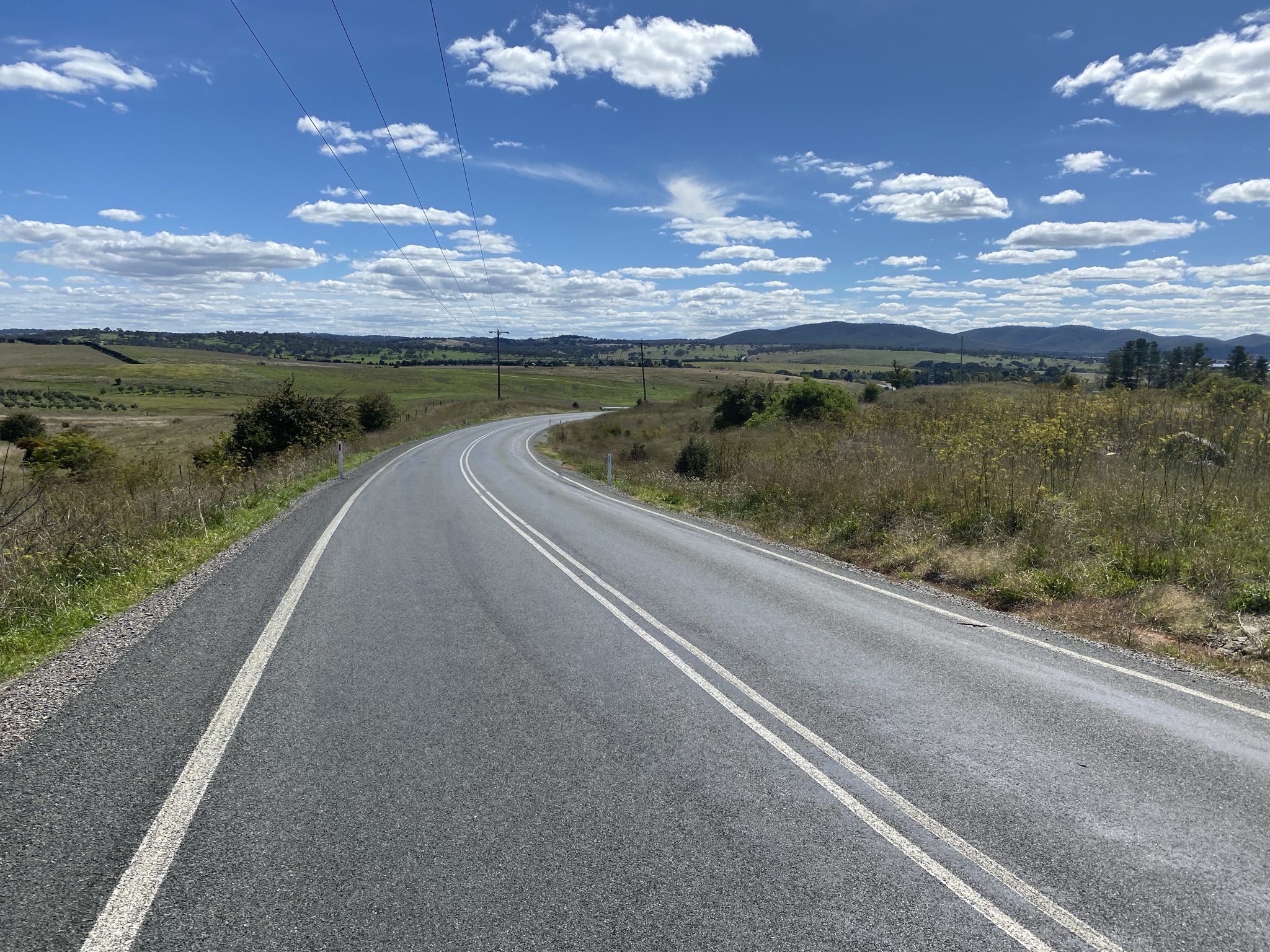 From Goulburn, I perused the Strava heat maps and selected Range Road as the way to travel in the hope it would have lower traffic than Crookwell Road. Whilst I can’t be sure of the difference, the traffic on a Friday afternoon was occasional and courteous, and I would recommend it as a route. Overall the only downside is that there some climbing to do as you have to make an additional 200m+ elevation to Crookwell.