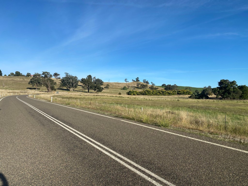 Currawang Road is a brilliant country road, and really is highly recommended. Gently undulating through farmland, you not only will be treated to great views, there seems to be very little traffic. It is the type of deserted open road that would also be worth a drive if travelling between Bungendore and Goulburn.