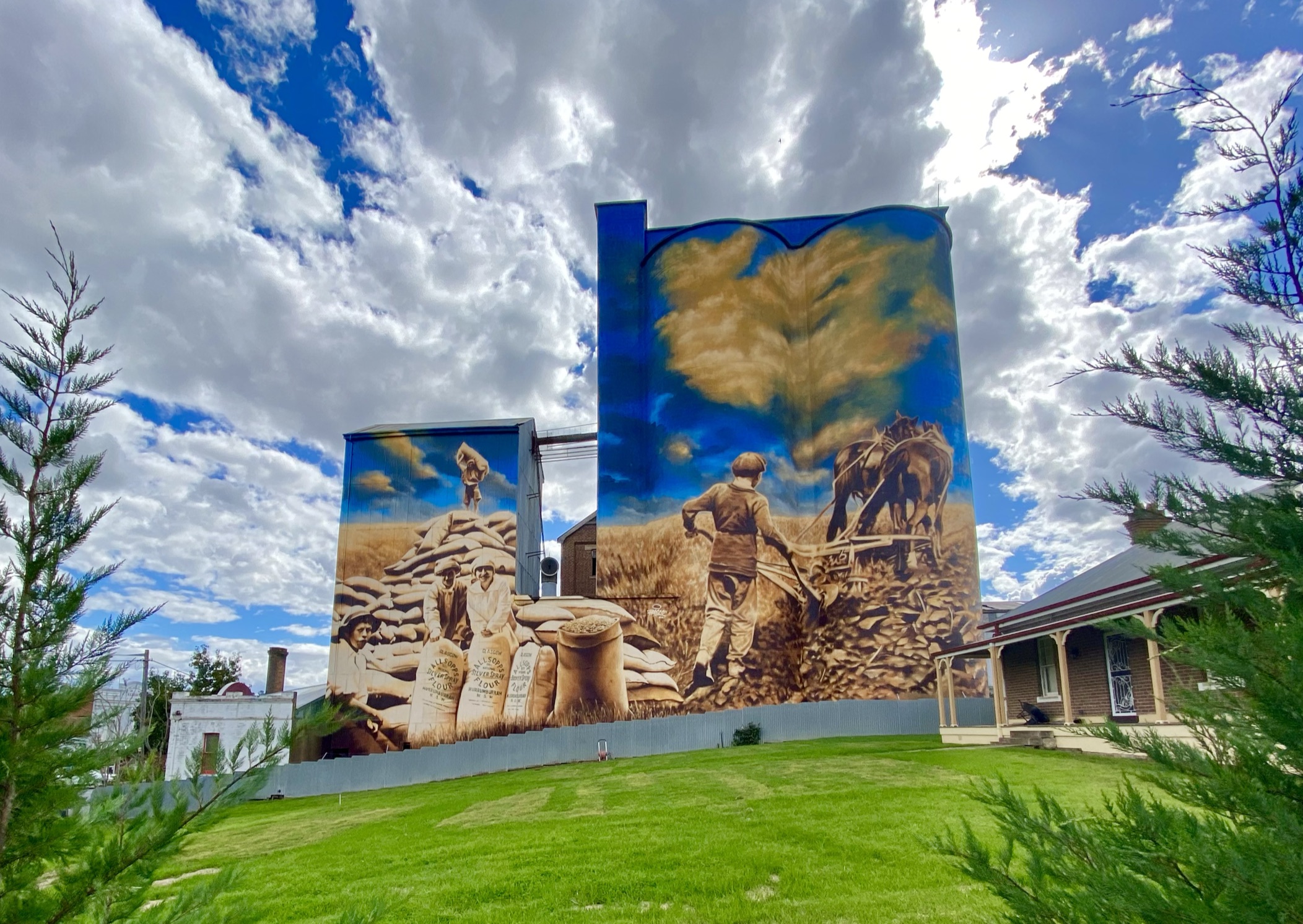 On approach to Harden I recommend the detour via Jellambi Road, rather than heading straight onto Burley Griffin Way – anything to avoid a genuinely main road. This is a great little route, with some gravel and awesome views. This route also deposits you into the right part of town to check out the silo art and Lighthorse memorial.