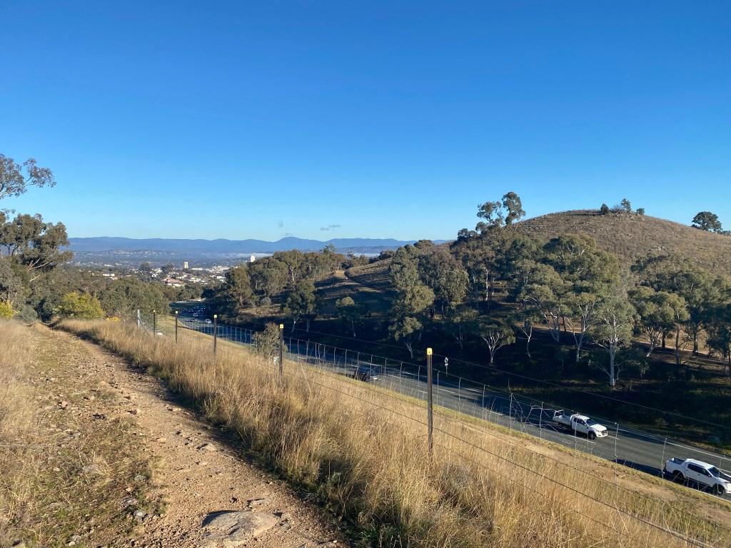Starting at the base of Red Hill, the Centenary Trail route leaves the gravel and heads through the suburb before crossing Hindmarsh Drive. From here, the trail heads up from the Mugga Lane / Hindmarsh Drive intersection before curling around the hill and down towards Isaacs. There is little to dislike about this route, but as an alternative to this route, it is possible to follow the trail set for the first 10km of Southern Canberra Ridges – which is more direct but does require crossing Hindmarsh Drive without the assistance of traffic lights. On the other hand, you do not get the really great view from the top of the Hindmarsh Mugga Mugga cutting.