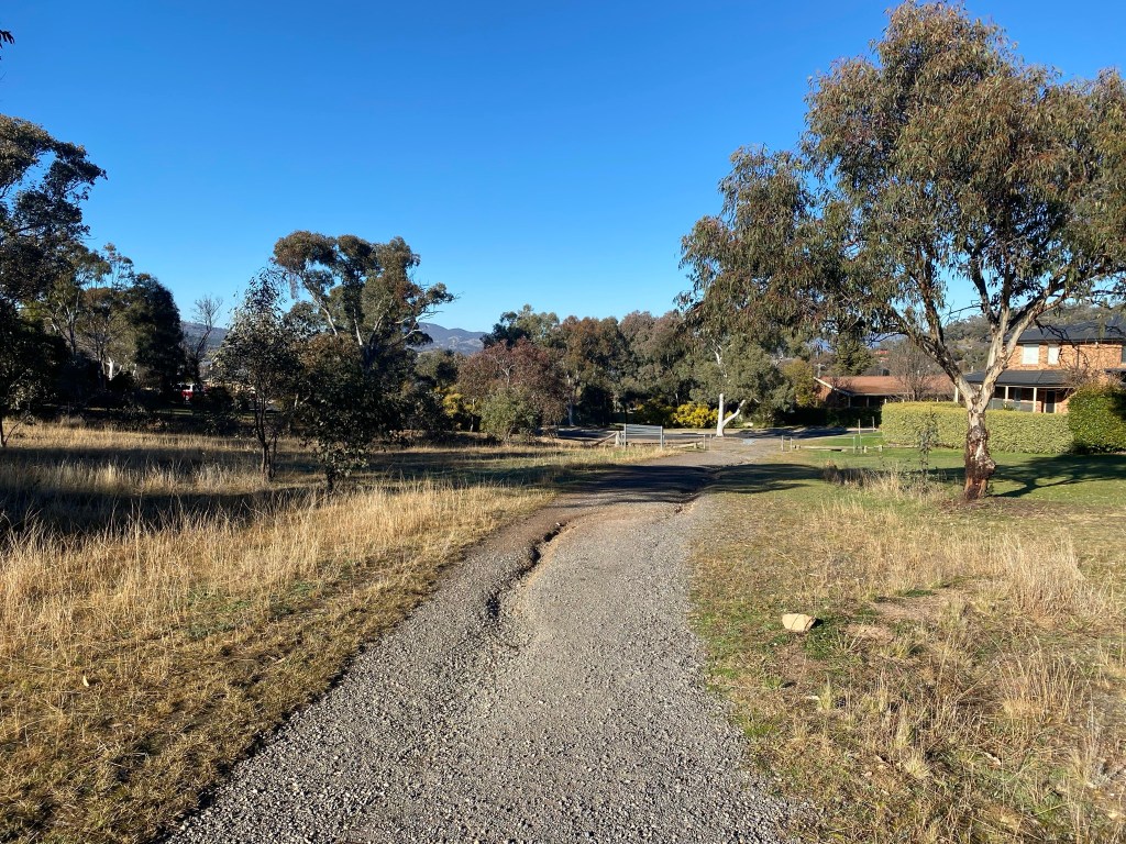 After heading under Long Gully Road, the trail heads not through Wanniassa Hill Nature Reserve but a number of paddocks following clearly marked tracks before running back to the suburbs at Macarthur. At the time of writing there is a diversion from the ‘usual’ Centenary Trail – which has been in place for at least a year. This is not horrible, but has removed a nice single-track section.