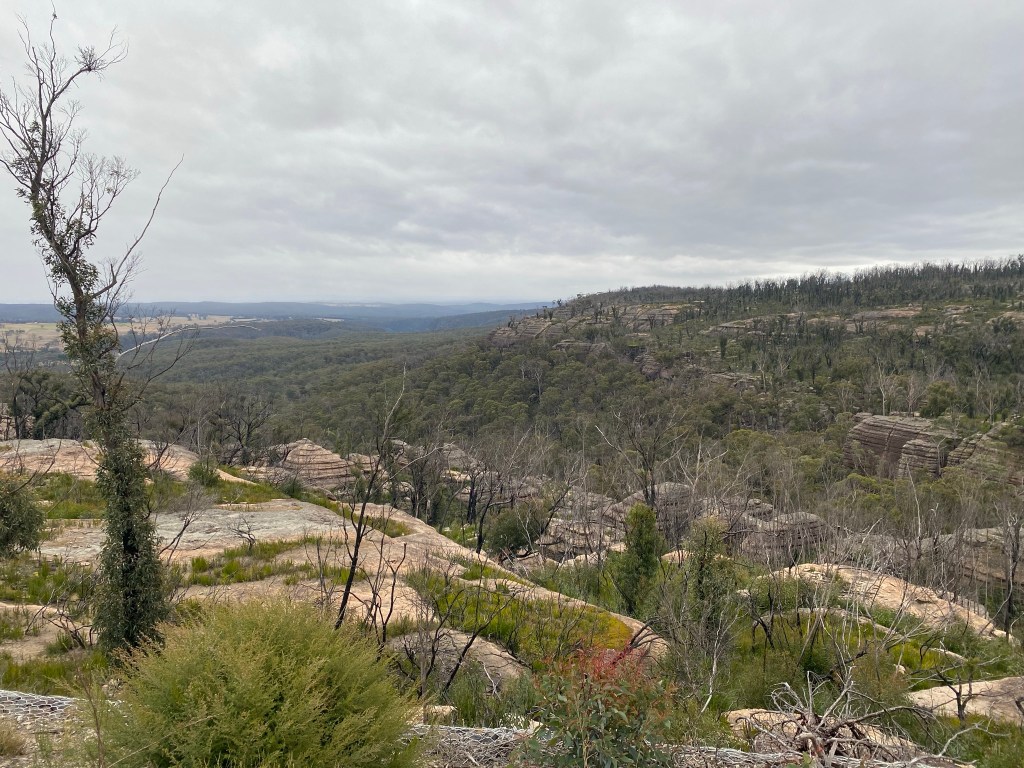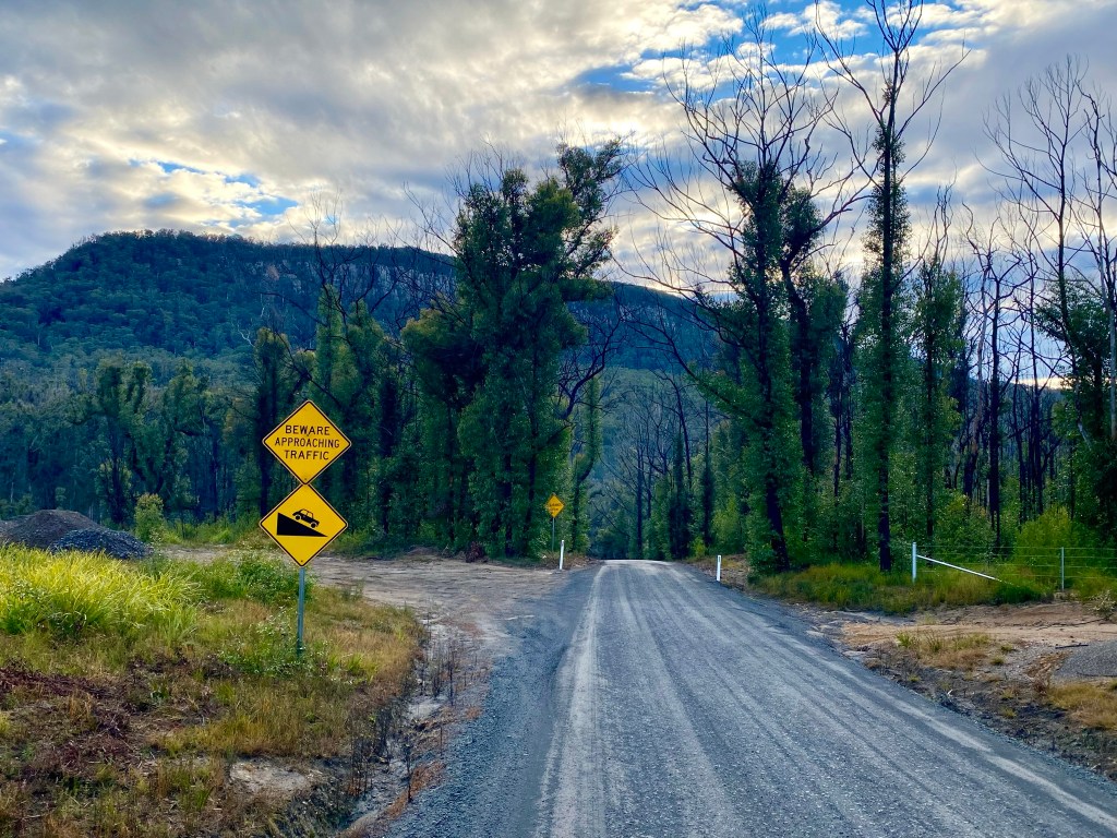 Starting through North Nowra and then Illaroo Road, the route is sealed with some occasional traffic. Once on Bugong Road (which soon turns to gravel) traffic is rare and you have the route pretty much to yourself. Travelling through areas that were bushfire affected in recent years shows how strong bush regrowth can be, but the fires have also opened up escarpment views.