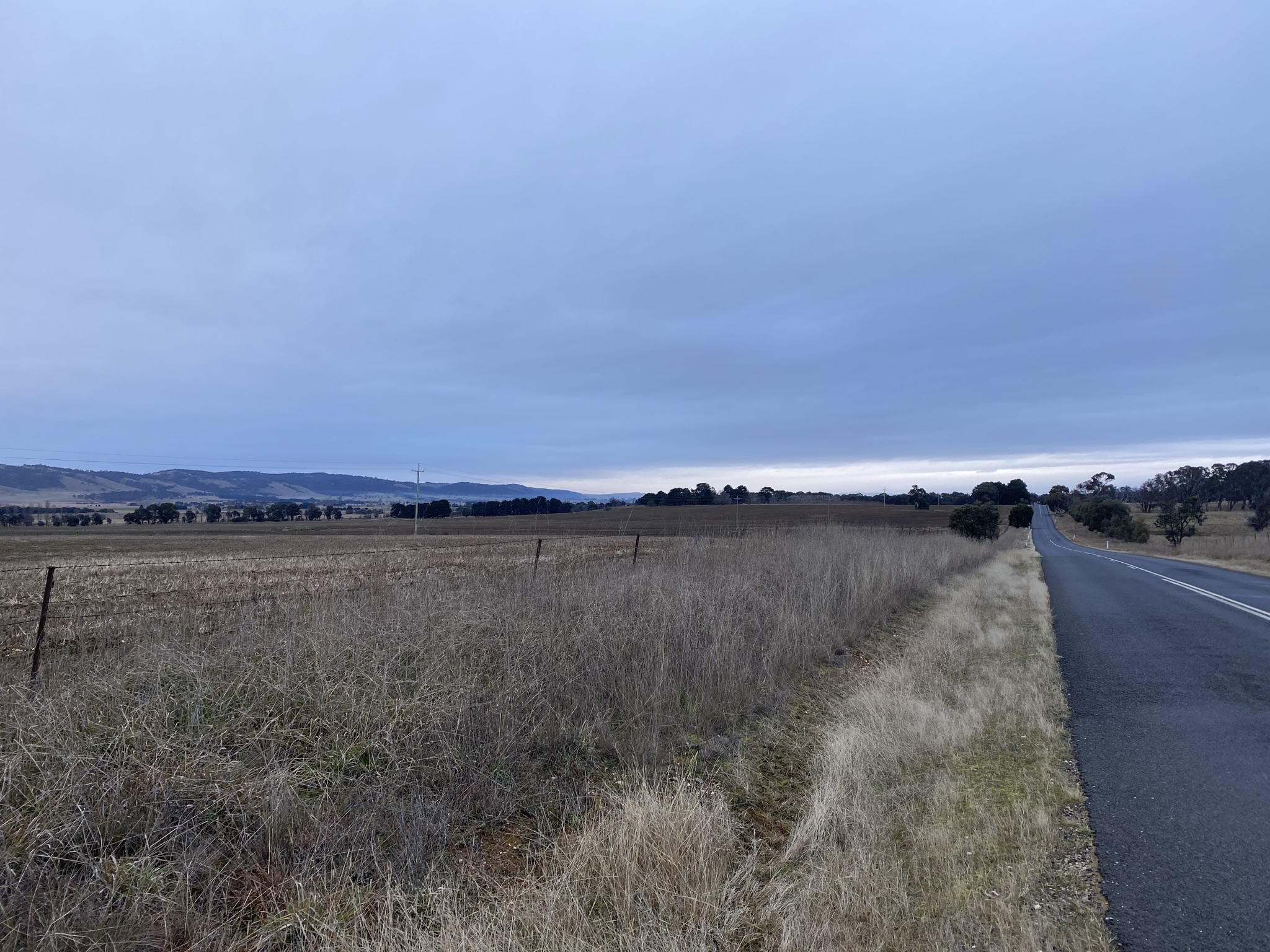 I had planned to do the reverse of the Canberra – Goulburn leg detailed in my previous flashpack. Unfortunately, I was so eager to change my exposure to wind and rain that I took a slightly early turn from Currawang Road into Taradale Road, rather than the intended Lucky Pass Road. Seeing that this seemed to be a road through to the highway near Collector, rather than turn back after a few kilometres I pressed on as the route seemed to be a viable public road.