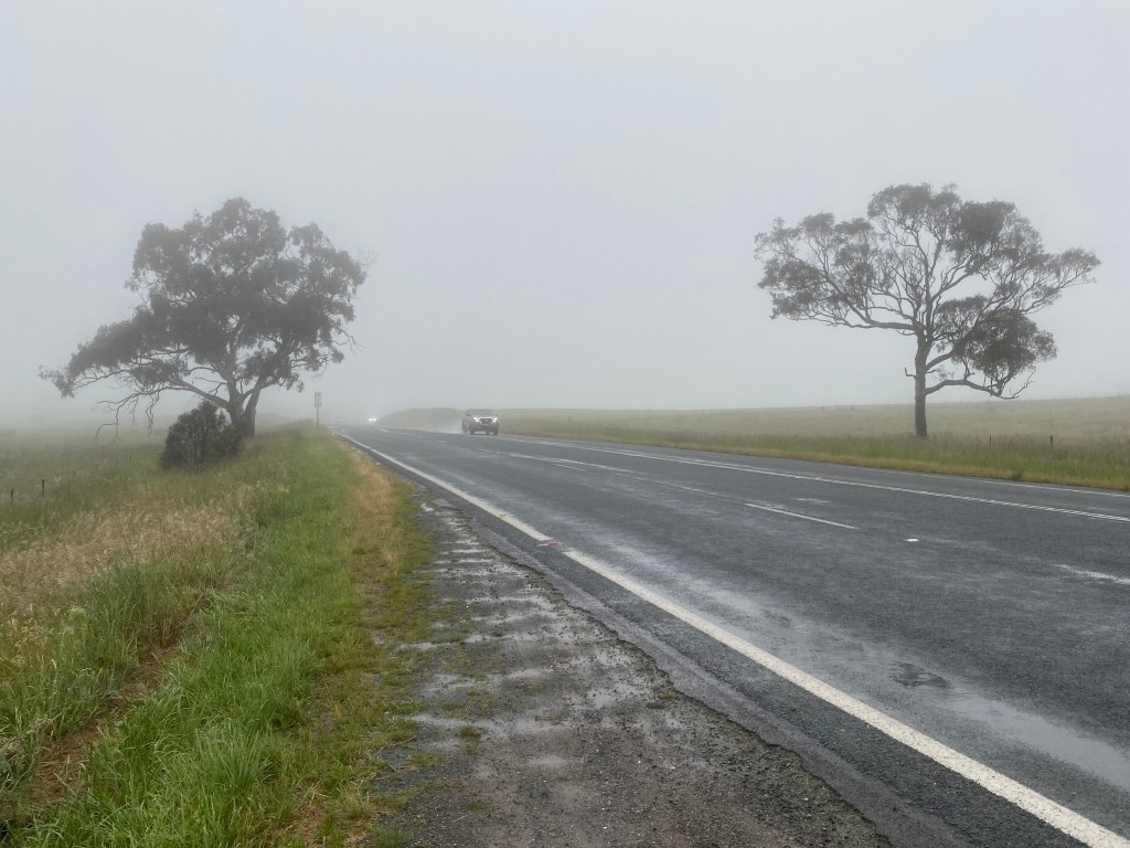 After Bredbo I was tempted to try backroads – Billilingra Road, Shannons Flat Road and on into Cooma. The relentless rain discouraged adventurism so I pressed on into Cooma.