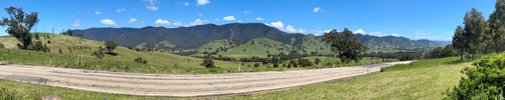 Heading out of Corryong, the route starts relatively flat – at least compared to what follows. This continues after crossing the Murray River as you pass through idyllic farmland and beautiful hillsides. Through to Tumbarumba, I also experienced very light traffic – potentially influenced by travelling on a damp Saturday.