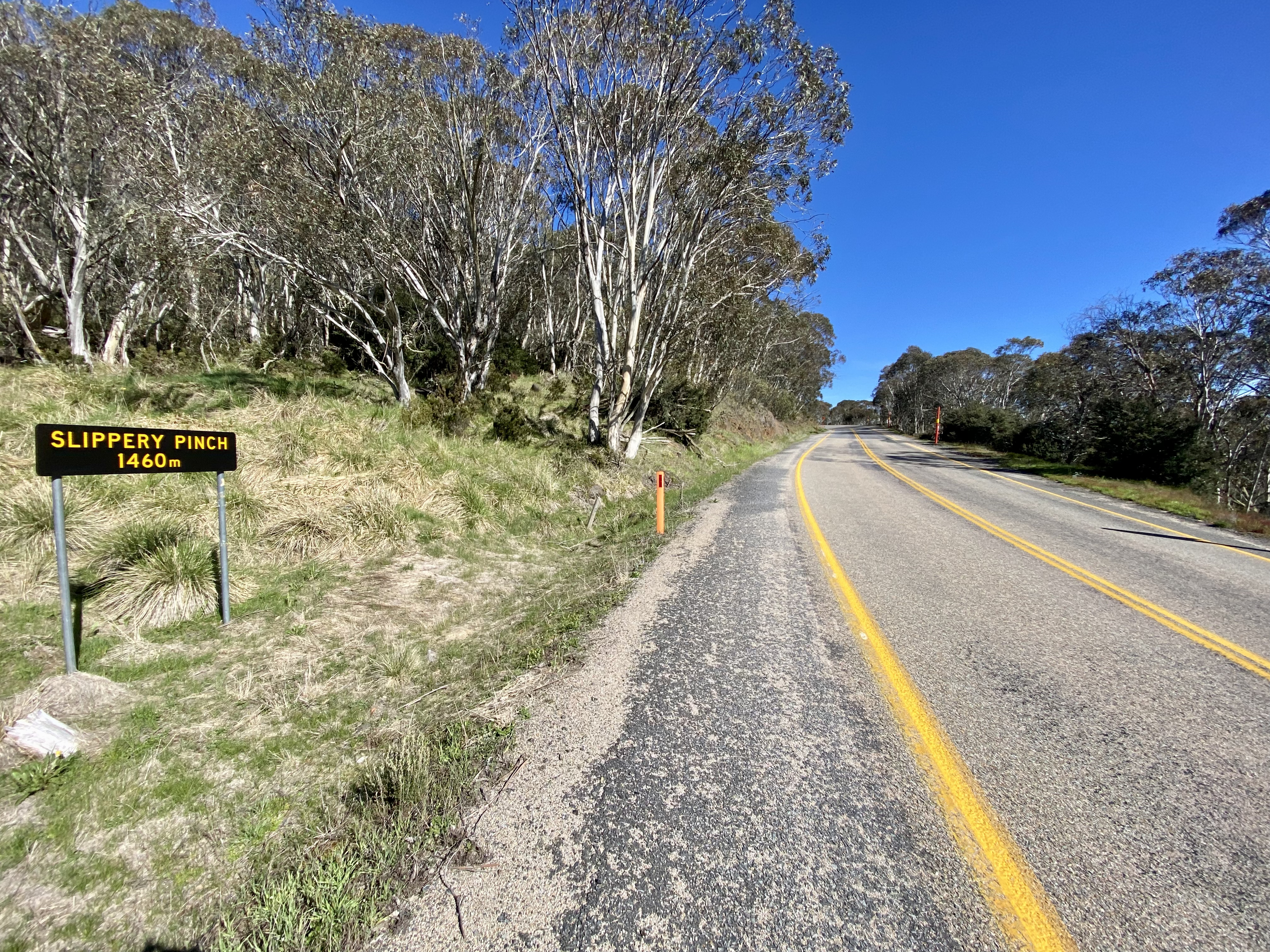 The climb to Hotham from Omeo is steady but not awfully steep – I think that the climb from Bright to Hotham is much harder work in parts. The steepest part from Omeo is an early 7km stretch averaging 6.5% gradient to the Kosciuszko lookout, but once you’ve made it here the gradients are still taxing but never as difficult. Helpfully, the whole route has signs every 5km showing the upcoming gradient.