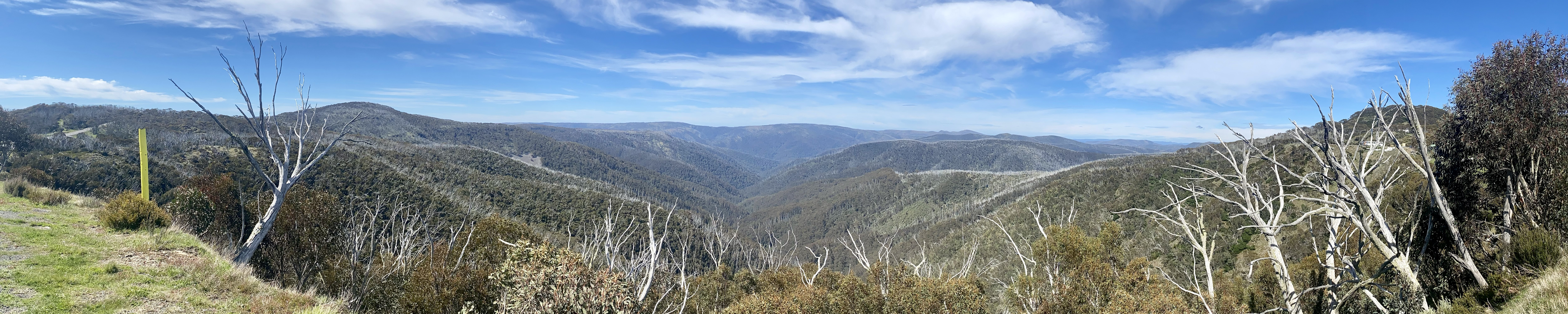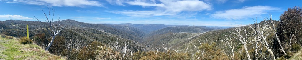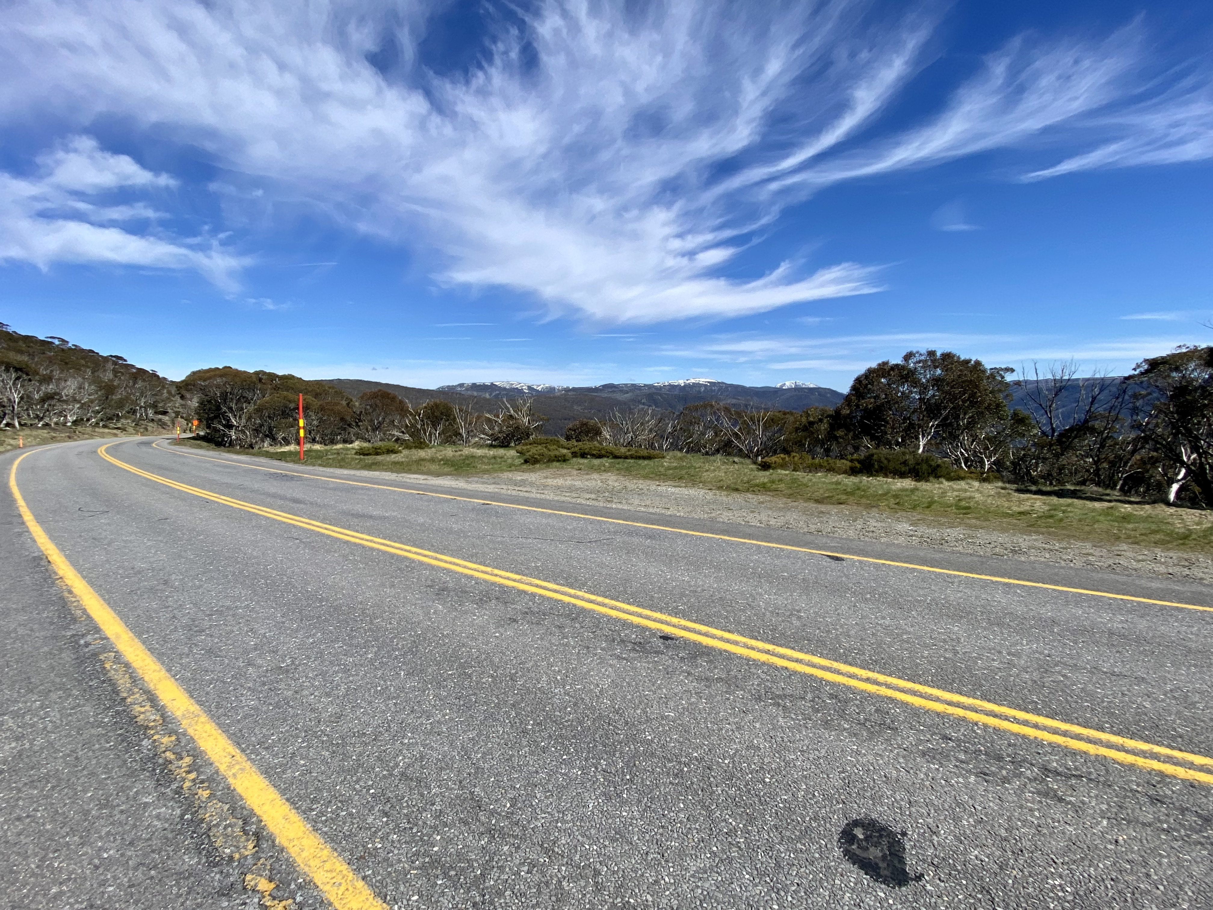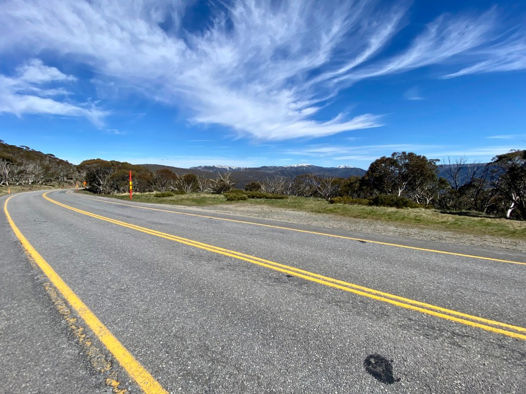 Dinner Plain is a recommended place to stop – out of ski season there seemed to be limited options at Hotham itself (ie one, a couple of kilometres from the summit), whereas at Dinner Plain there are good bathrooms, water refill taps and a cafe. The views as you depart and continue to Hotham are also excellent.