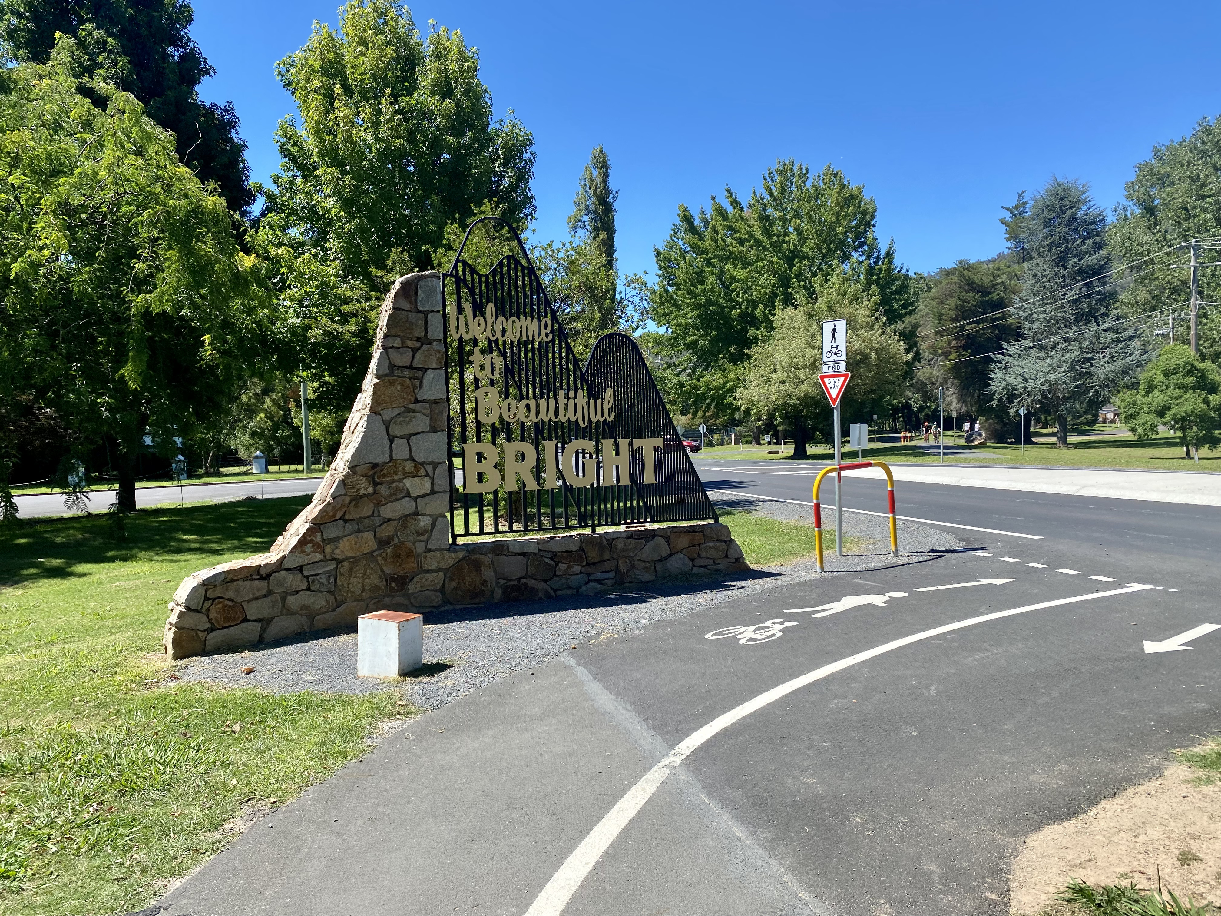 On entering Bright the rail trail passes behind houses before depositing you in the main shopping area of town. Again, the ability to carry purchases should be considered depending on who you are travelling with (and that includes takeaway from Bright Brewery!). If you want to add some distance to your route you can also consider the very pleasant cycle up to Harrietville.