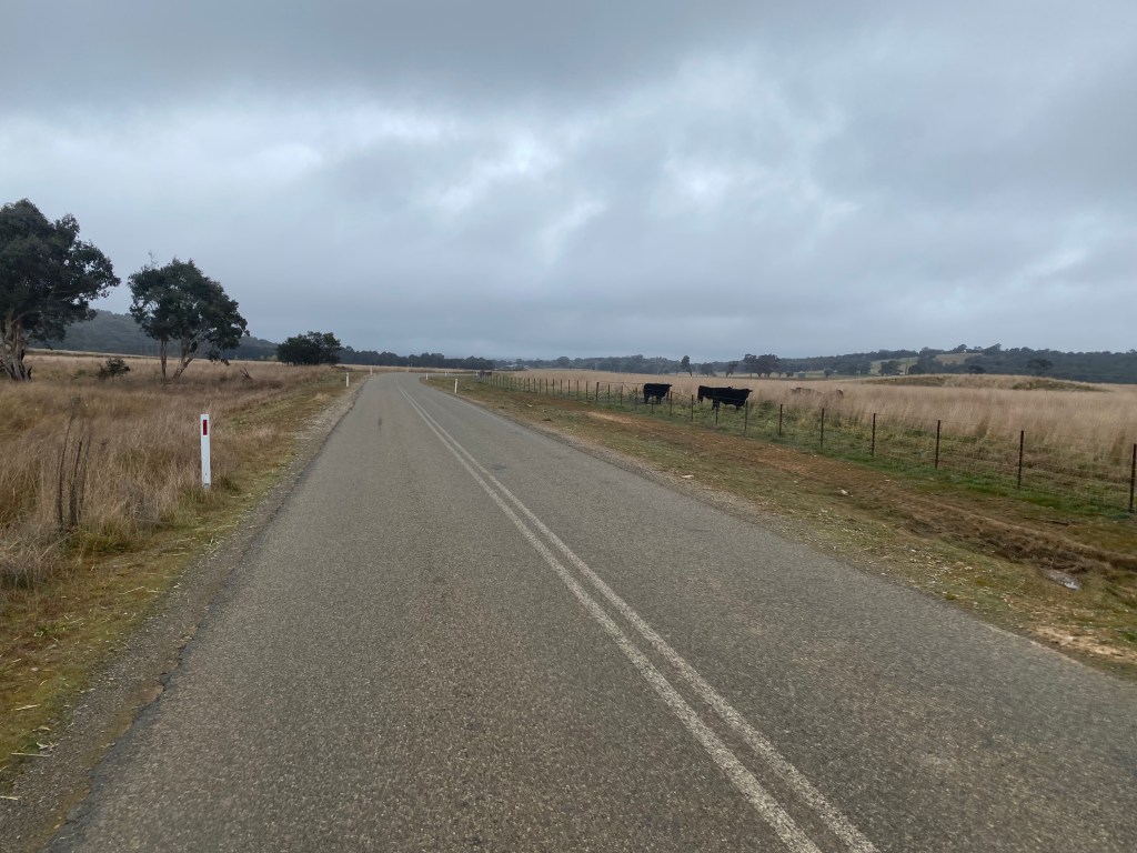The first part of this ride takes roads I have covered before – heading out of town via Spring Range Road and then connecting to Dicks Creek Road. See, for example, Gunning Gravel, Gundaroo Gravel, and Yass on-road for more on these roads. There is a short highway-based run between the ACT border and Spring Range Road which hopefully will have a really nice verge when Barton Highway duplication of this segment is complete in 2023.