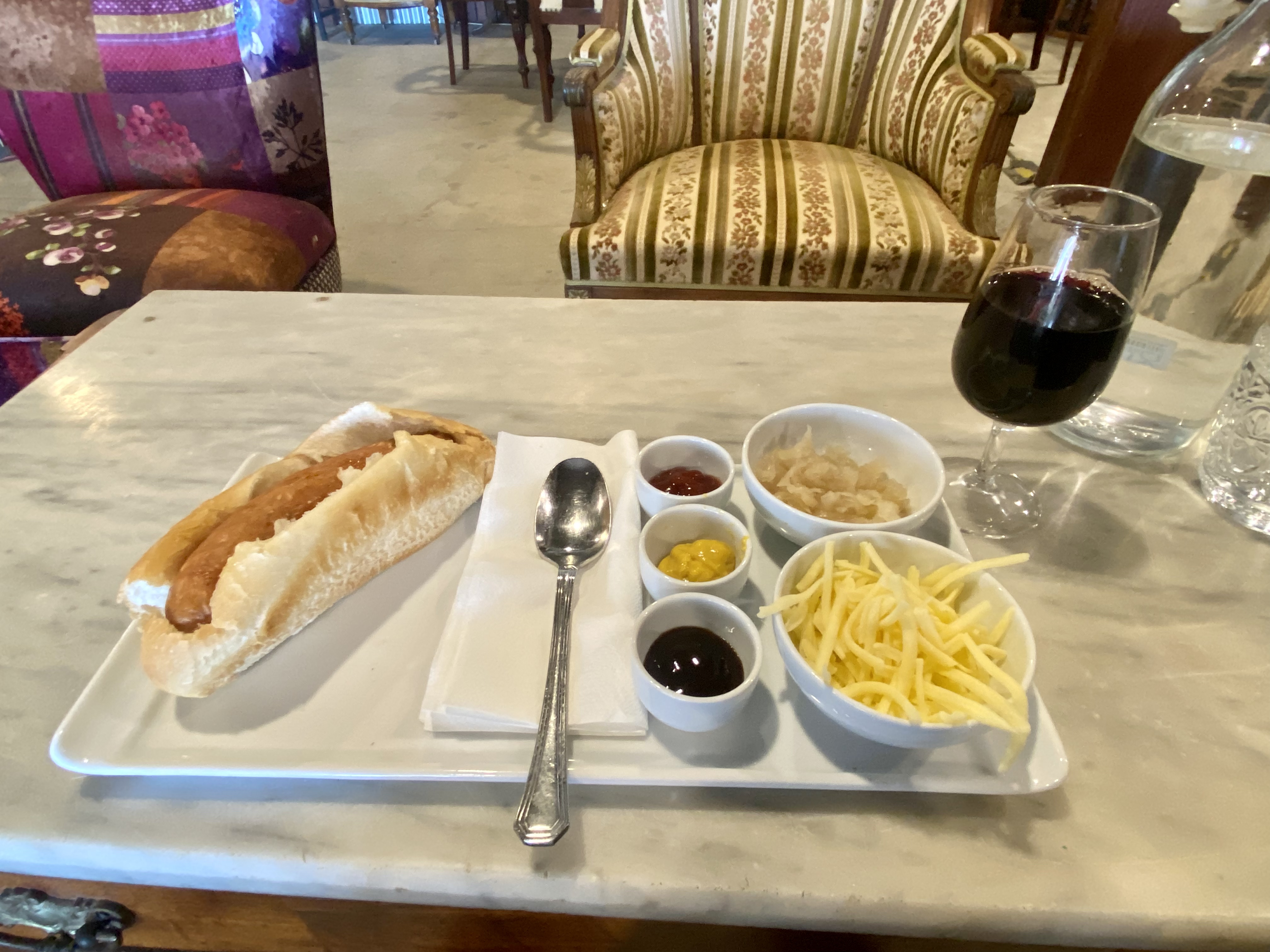 Although I’ve ridden Dog Trap Road quite a few times I have never stopped on this route itself – instead in Yass or Murrumbateman. These are, however, not anywhere on (or really very near) Dog Trap Road – particularly when travelling back to Canberra. Granitevale Estate offers just what a cyclist needs – Kransky. Adding a glass of red hits the spot – but be warned you may need space in your bike bags to leave with a bottle or two. Hosts Greg and Leigh are up for a chat, and their Jack Russells will love your attention if you are so inclined. Raging fireplaces in winter are nice, and I expect summer outside would be tremendous.