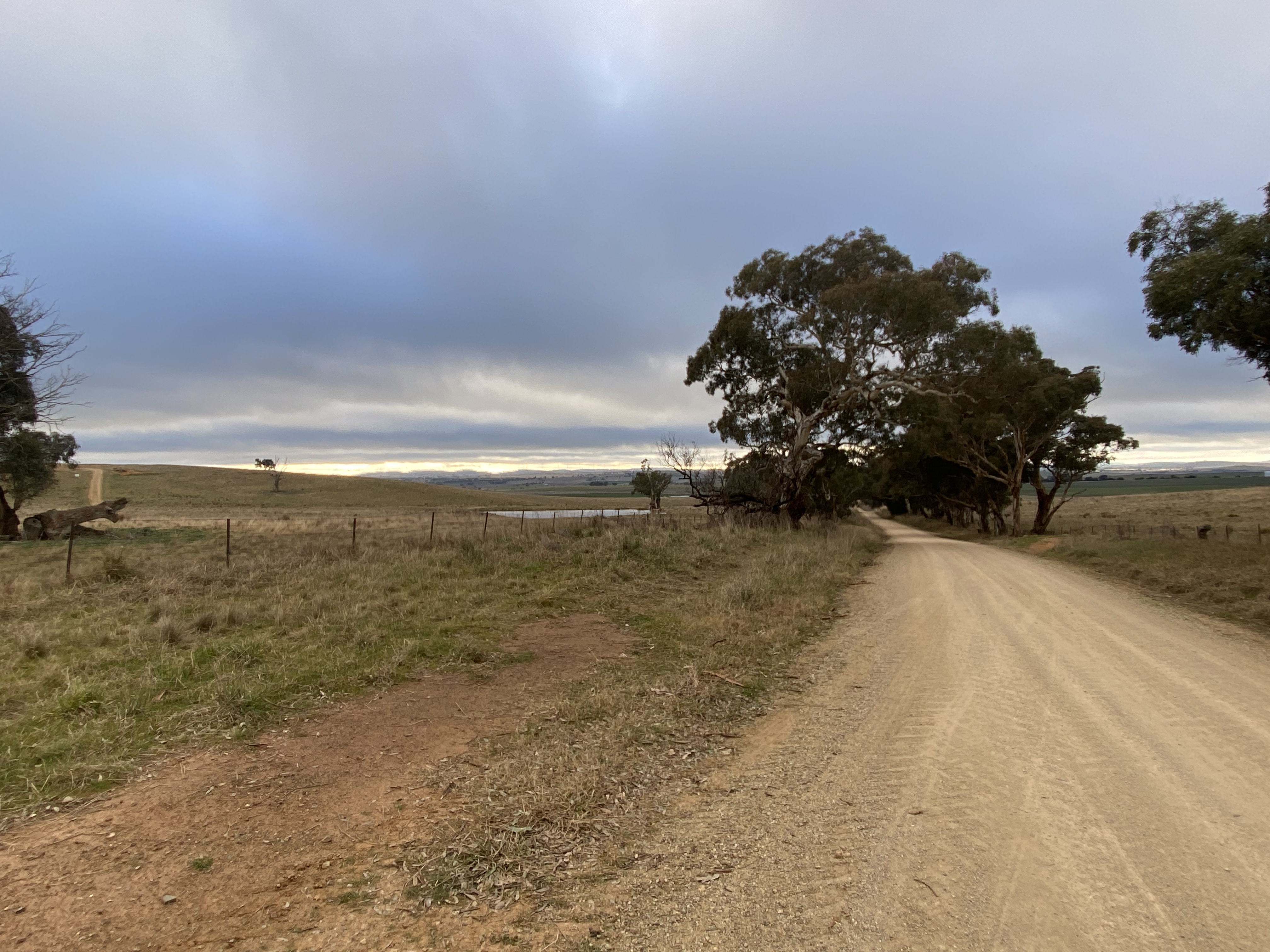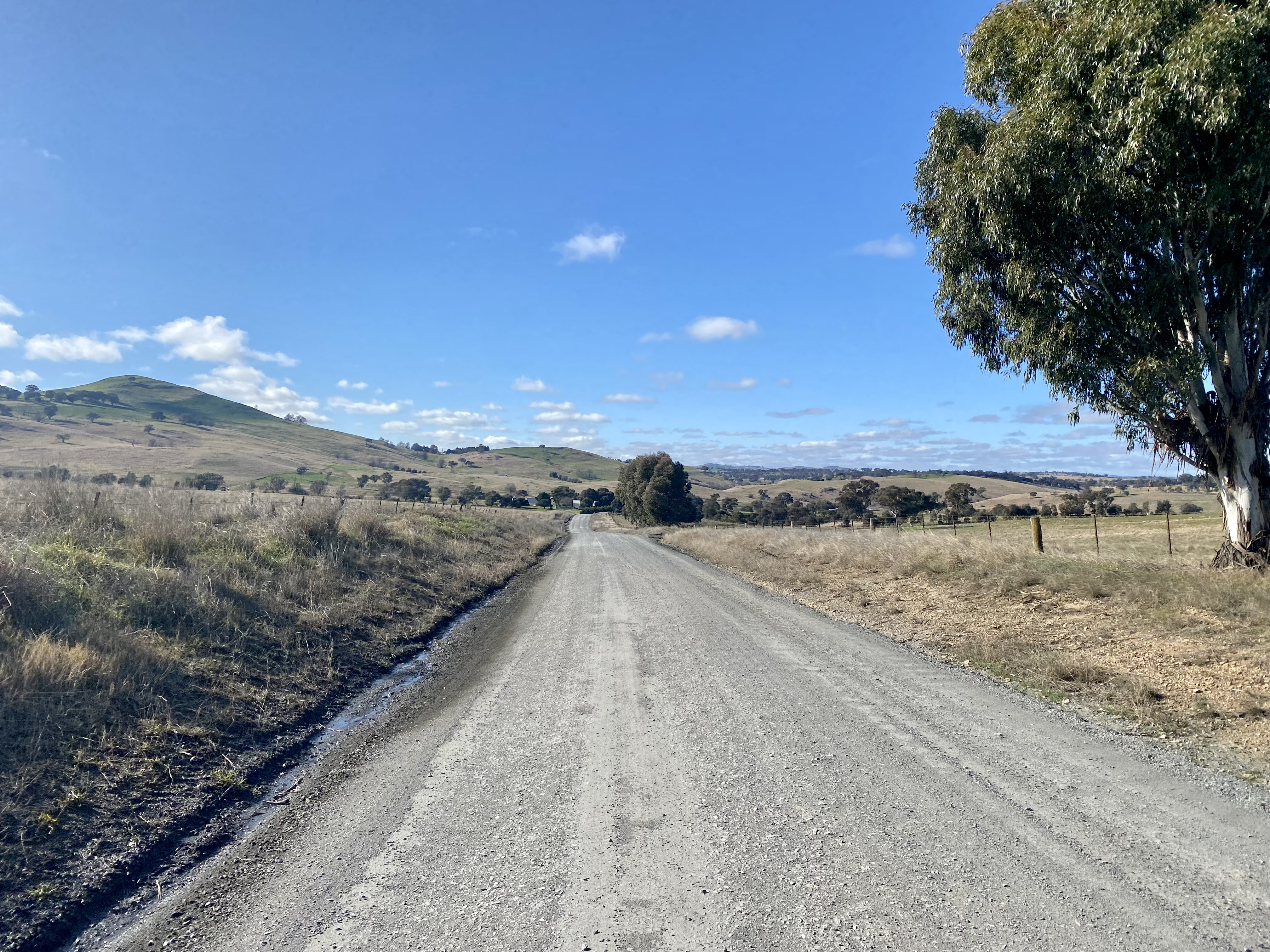 The first part of this ride takes roads I have covered before – heading out of town via Spring Range Road and then connecting to Dicks Creek Road. See, for example, Gunning Gravel, Gundaroo Gravel, and Yass on-road for more on these roads. There is a short highway-based run between the ACT border and Spring Range Road which hopefully will have a really nice verge when Barton Highway duplication of this segment is complete in 2023.