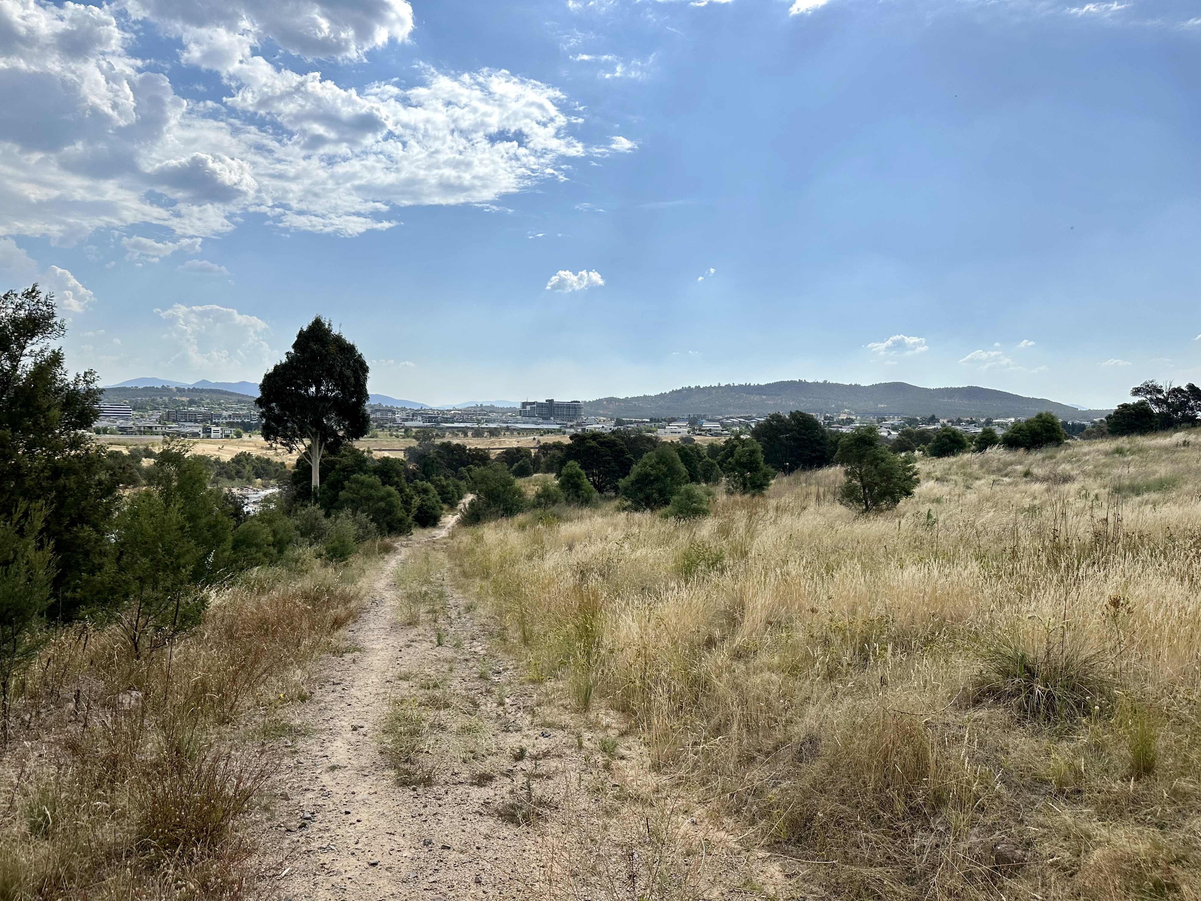 Starting on the Lake Burley Griffin circuit, this route heads down the “C5 cycleway” parallel to the Molonglo’s flow from the lake. It is possible to cross sooner than this route (see Molonglo River Reserve), but it doesn’t take much rain for this to be impassable. Continuing on to the Bicentennial National Trail bridge crossing is an “all weather” option except for the most extreme situations.