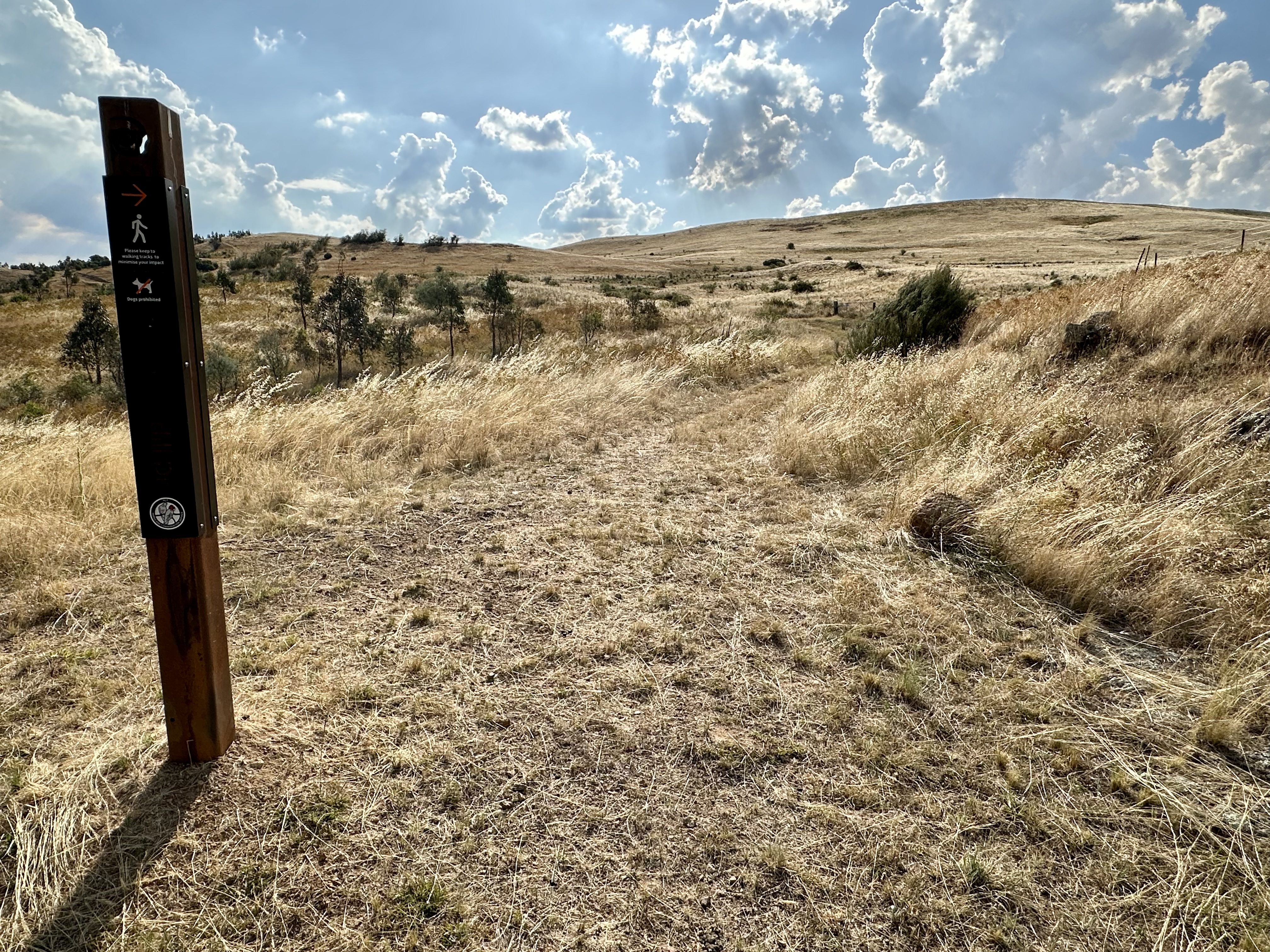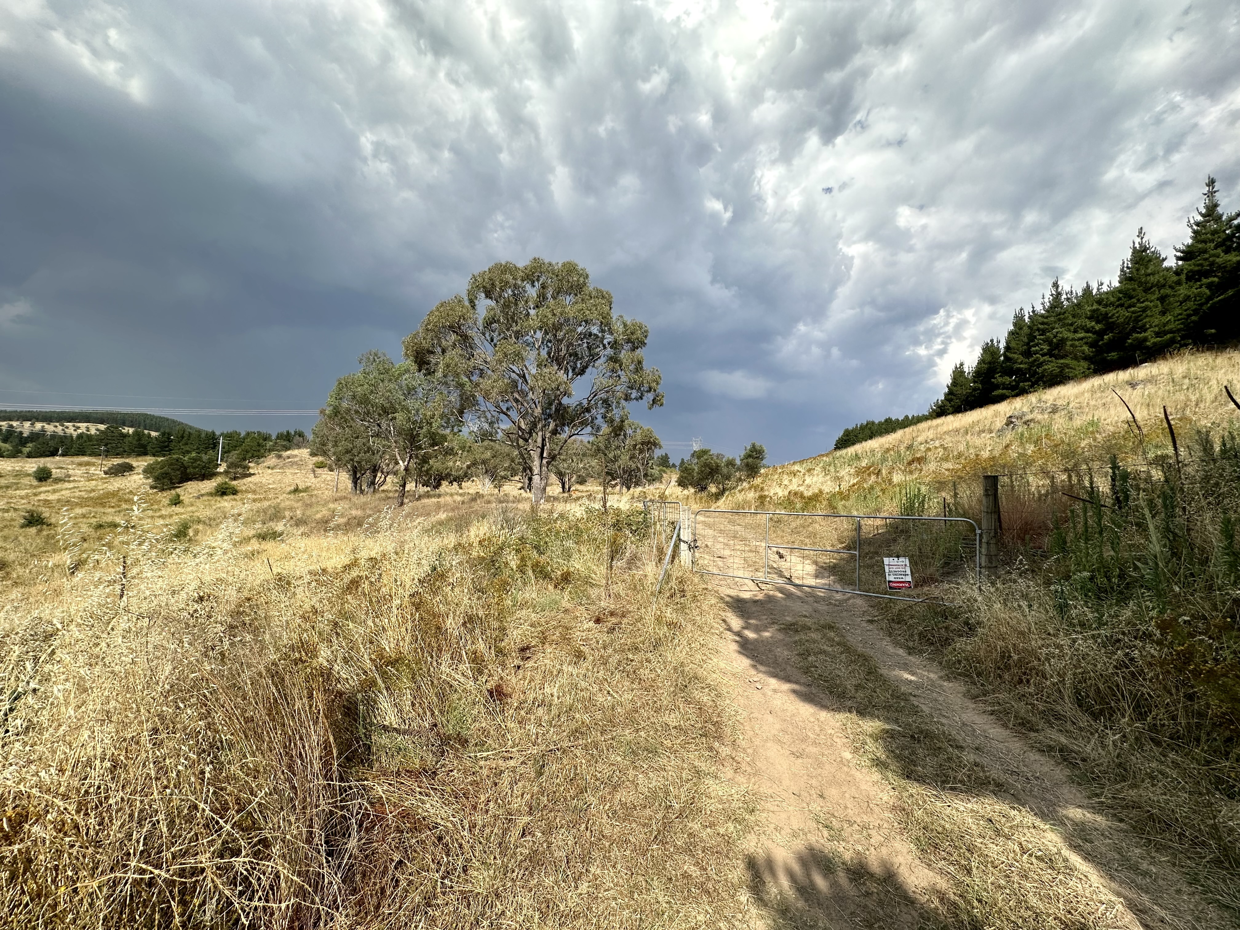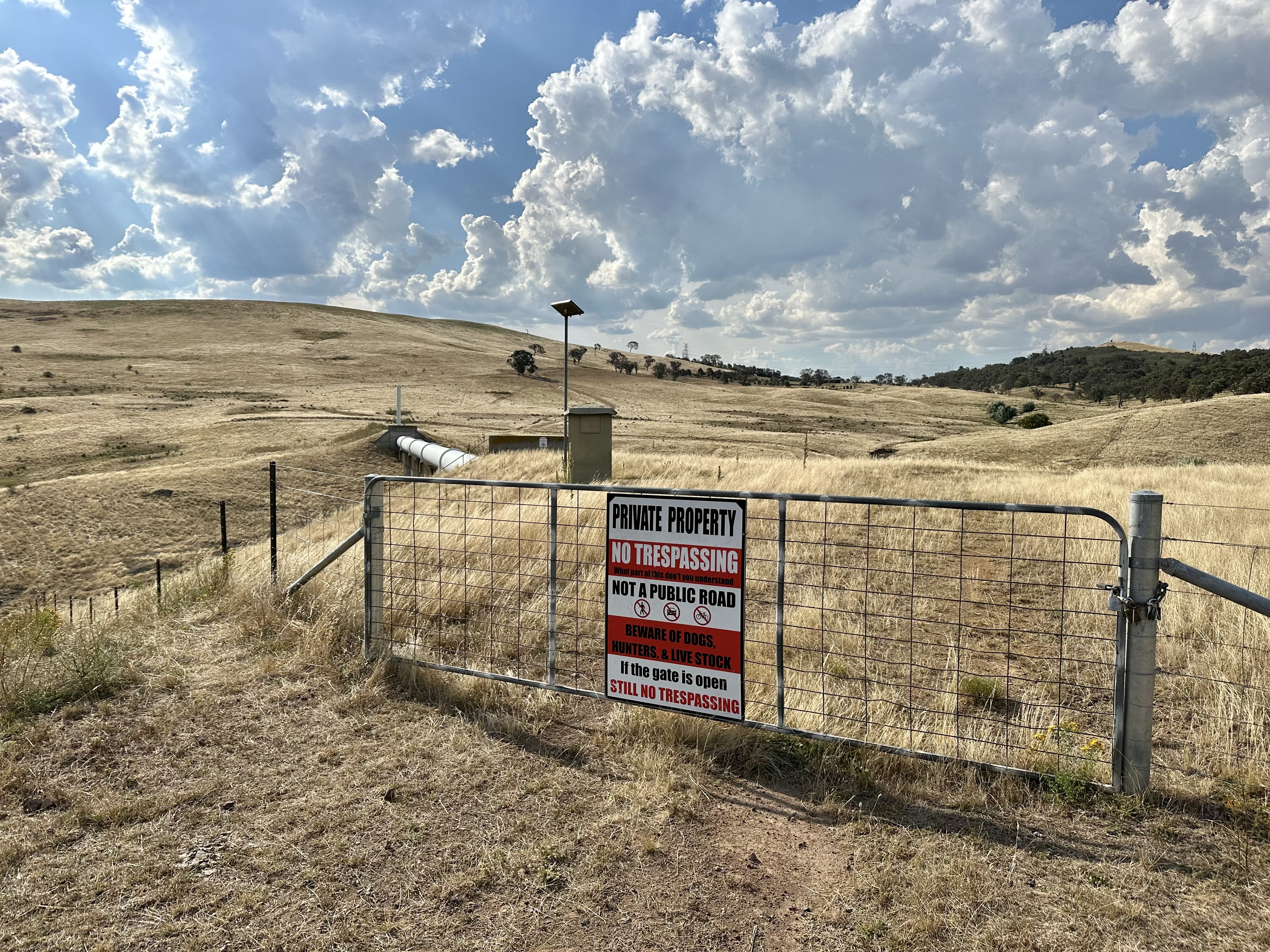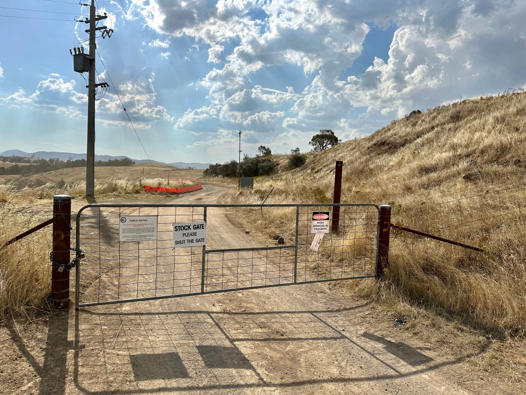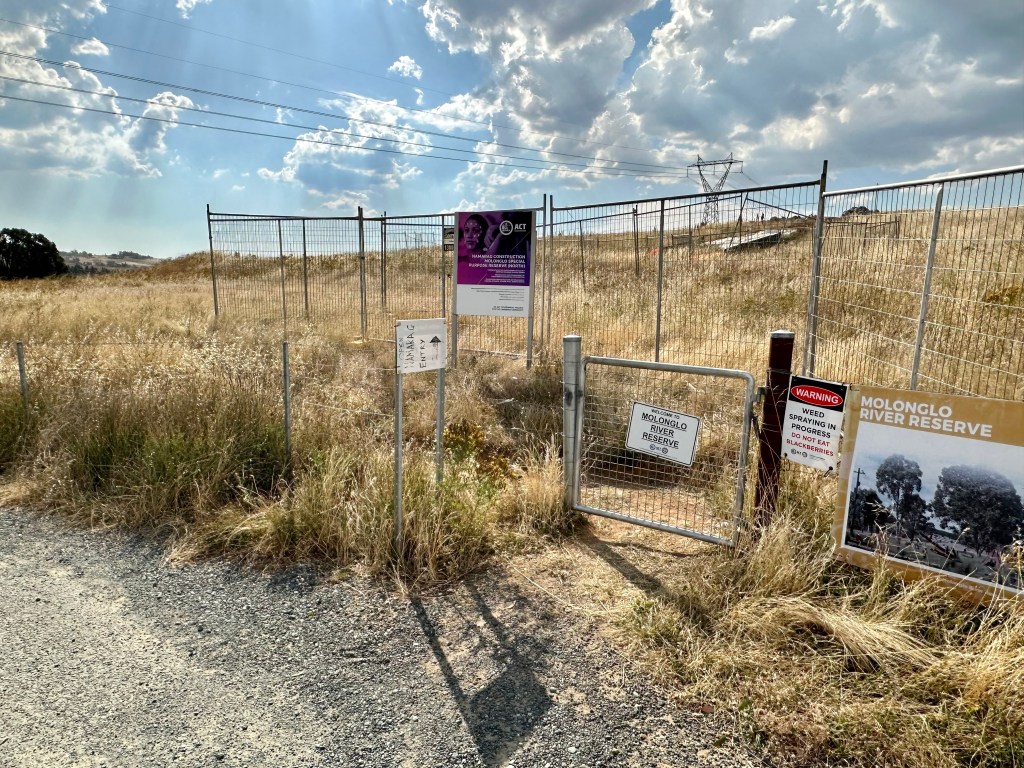 - If doing this route in reverse direction, picking the correct gate is pretty simple – it is the first gate that lacks the “no trespassing” signs! Just behind the correct gate is also a clear ACT Parks signpost.