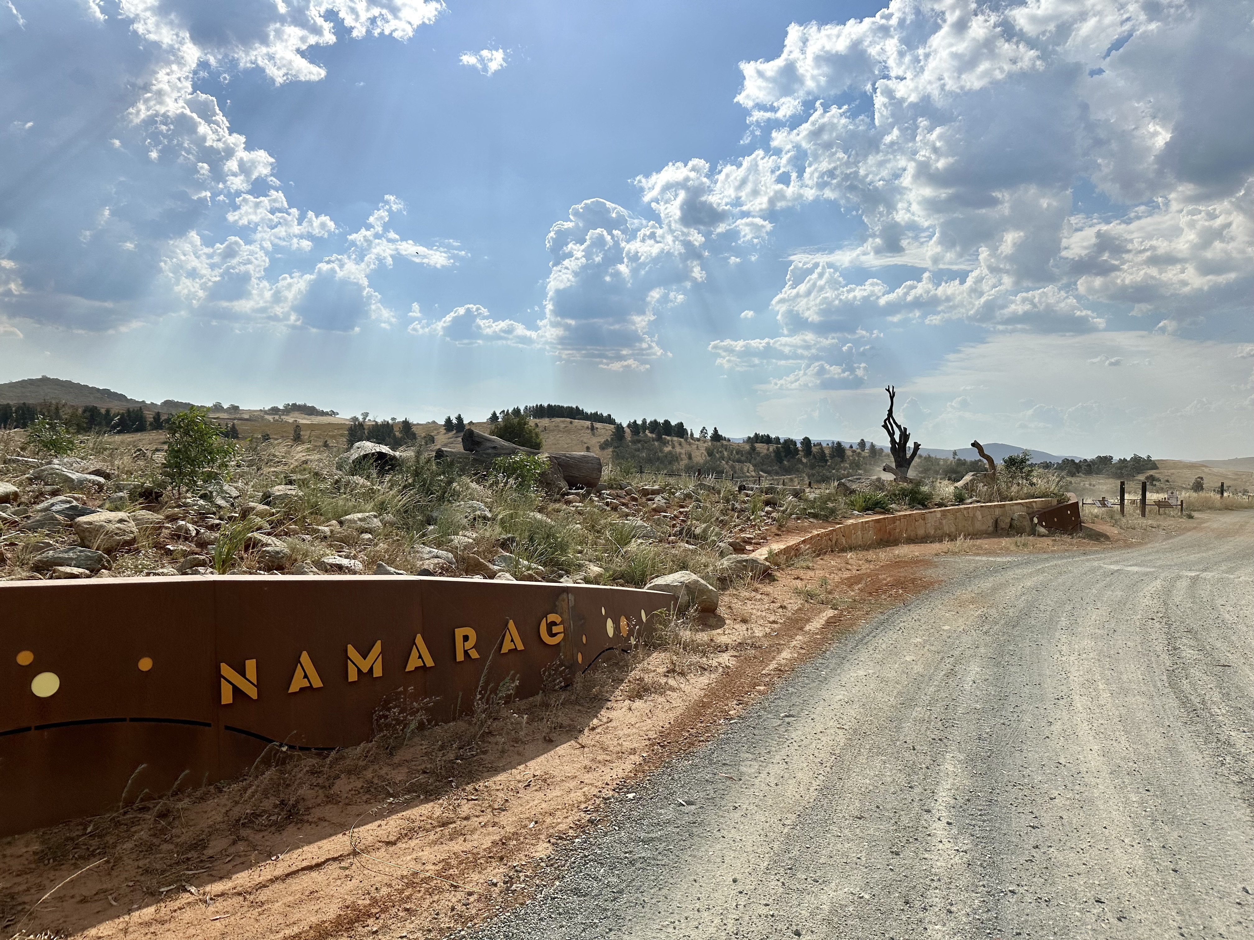 The rapidly changing sections of Pipe Flat Road near Whitlam continue in a similar style to the road prior to Coppins Crossing Road. After crossing the asphalt, the next gate now has a hinged pedestrian-style option that removes any need for lifting your bike. Shortly after here you arrive at the Namarag reserve, which is worth a look around if you have time (particularly the views down near Butters Bridge).