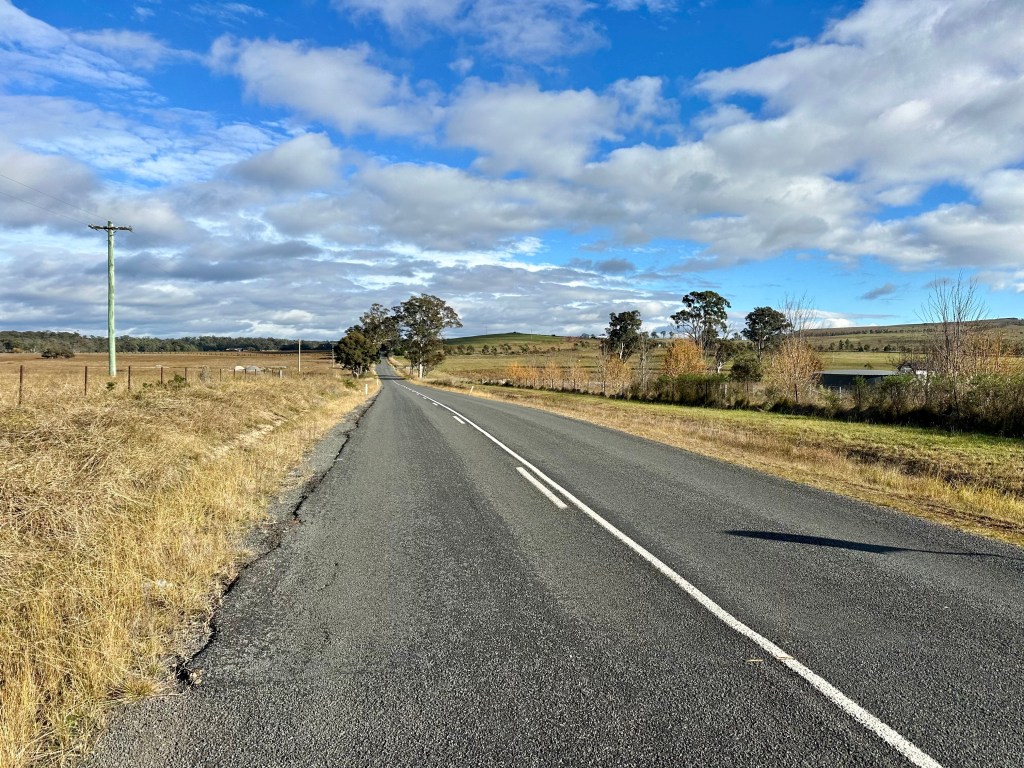After a night of strong winds it was not a complete surprise to find a tree down on Bannaby Road – the quiet backroad out of Taralga that starts the journey back to Moss Vale. I was a little sheepish when lifting the bike over and a couple of four wheel drives came along – only to have to turn around and head back the way they came whilst I continued on. Needless to say, I wasn’t passed by any traffic the rest of the trip to the locality of Bannaby.