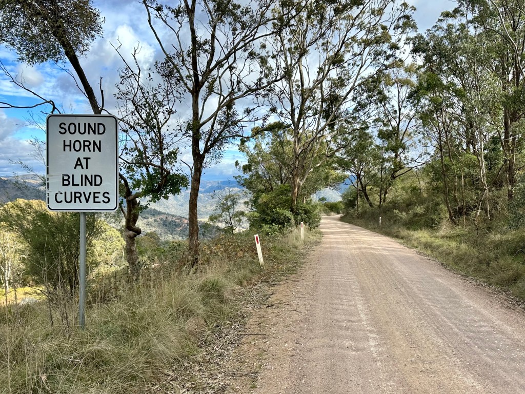At the time CyclingGravel travelled this route, the Wombeyan Caves reserve was closed – including the toilets and picnic areas. These would normally make a good stop before the final climb out through Mares Forest and on towards Taralga. Some of the road initially was in poor condition and quite narrow, but once at the top the road is broad and smooth. Very nice gravel.
