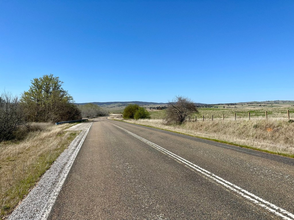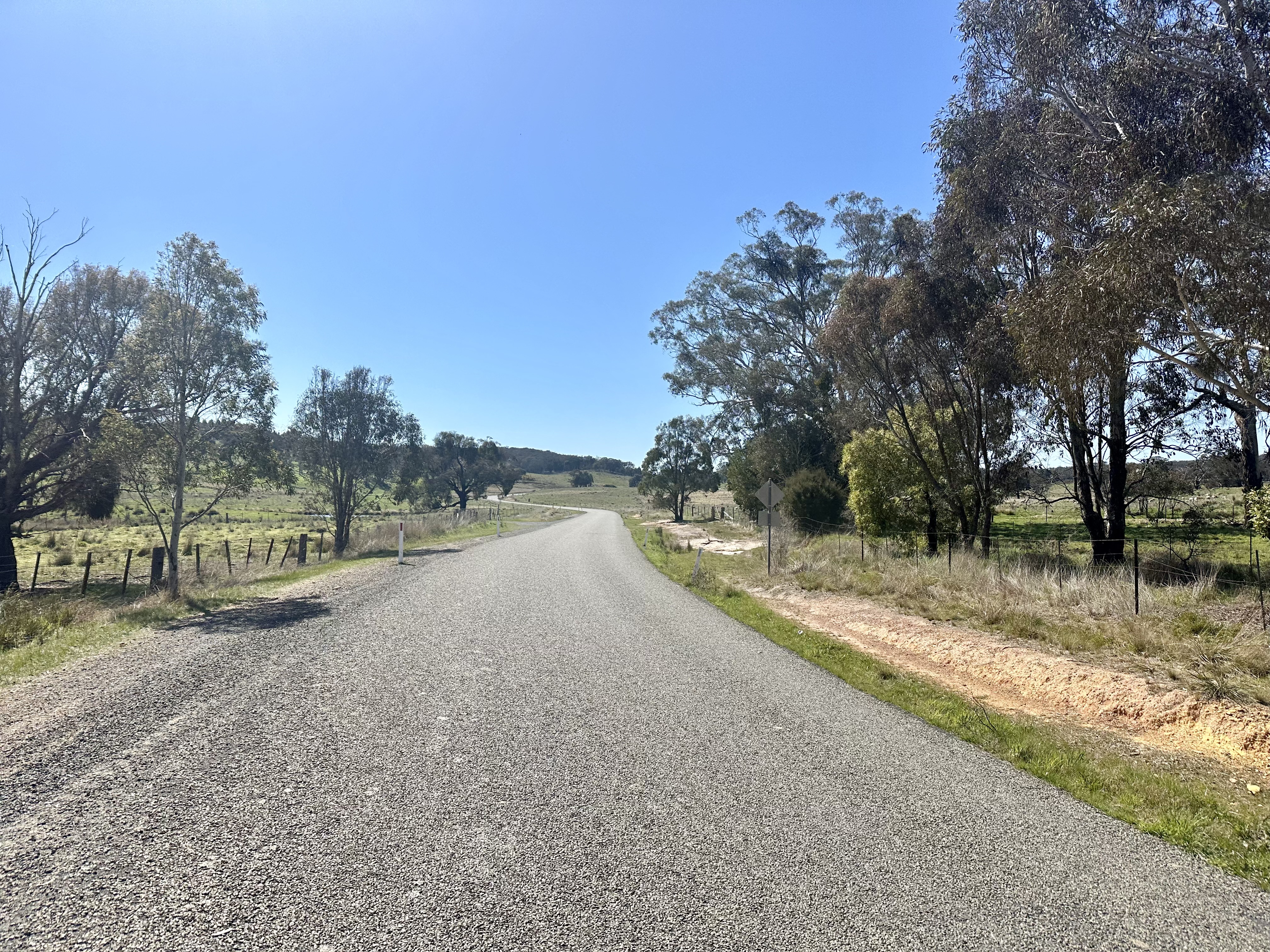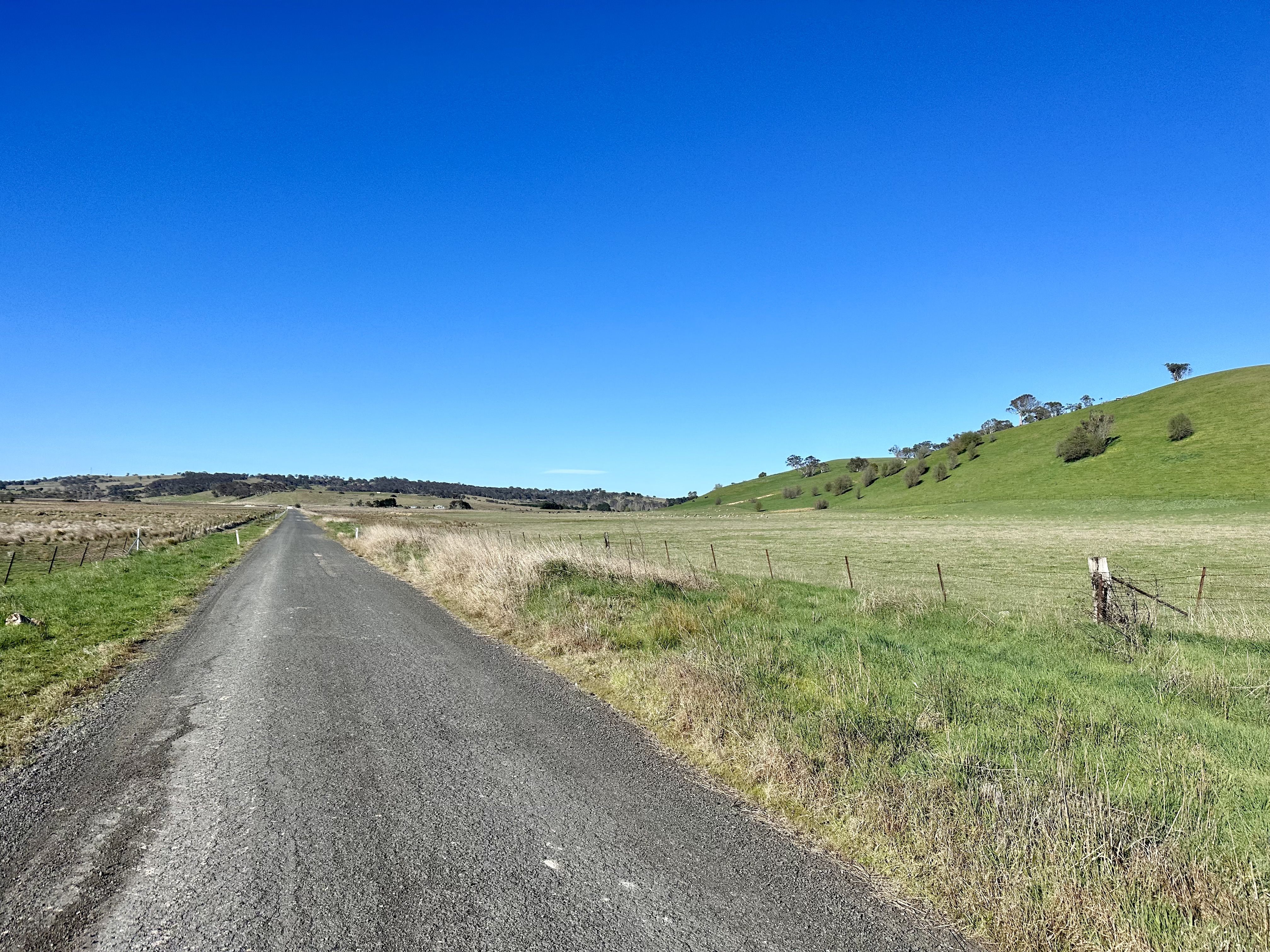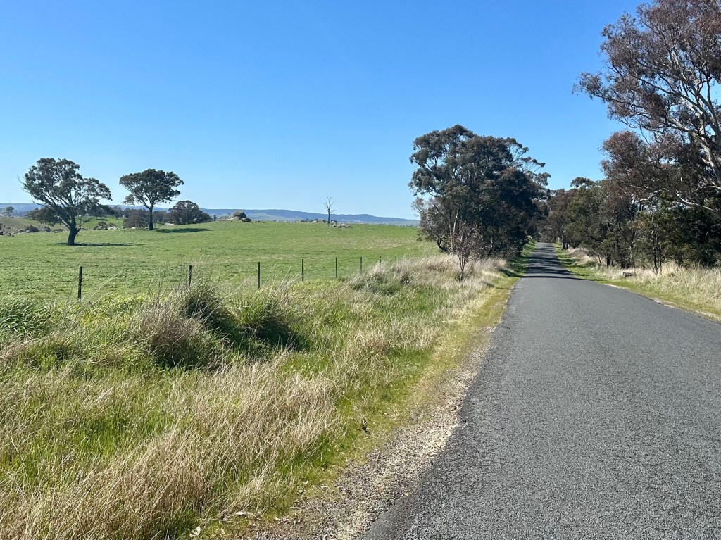 Berrebangalo Creek Road is typical of this area – a combination of local farms and open-wide views as you crest some of the gentle hills. This continues on the final stretch into Gunning via Lade Vale Road. Despite being sealed, this also seems to have quite limited traffic.