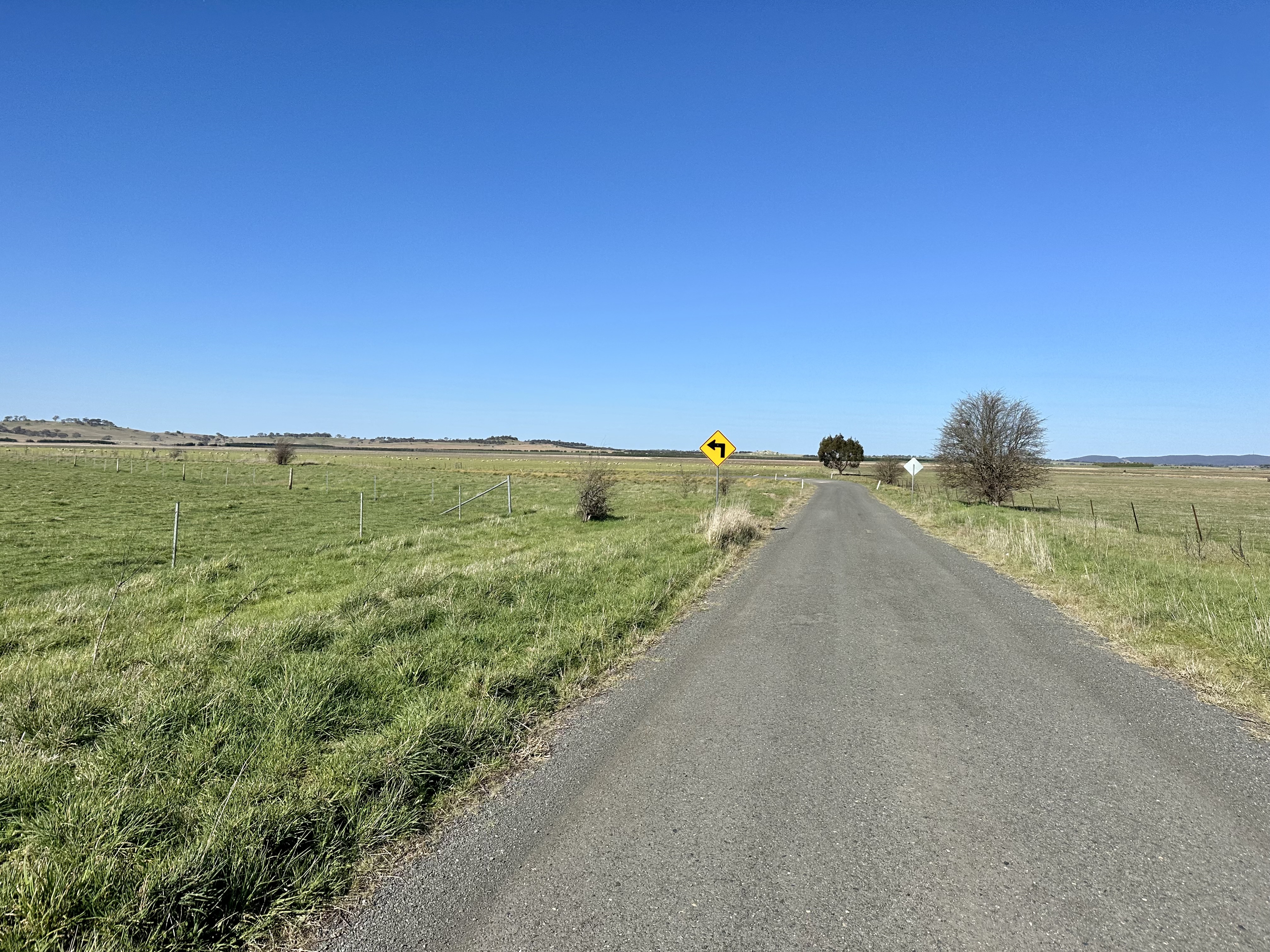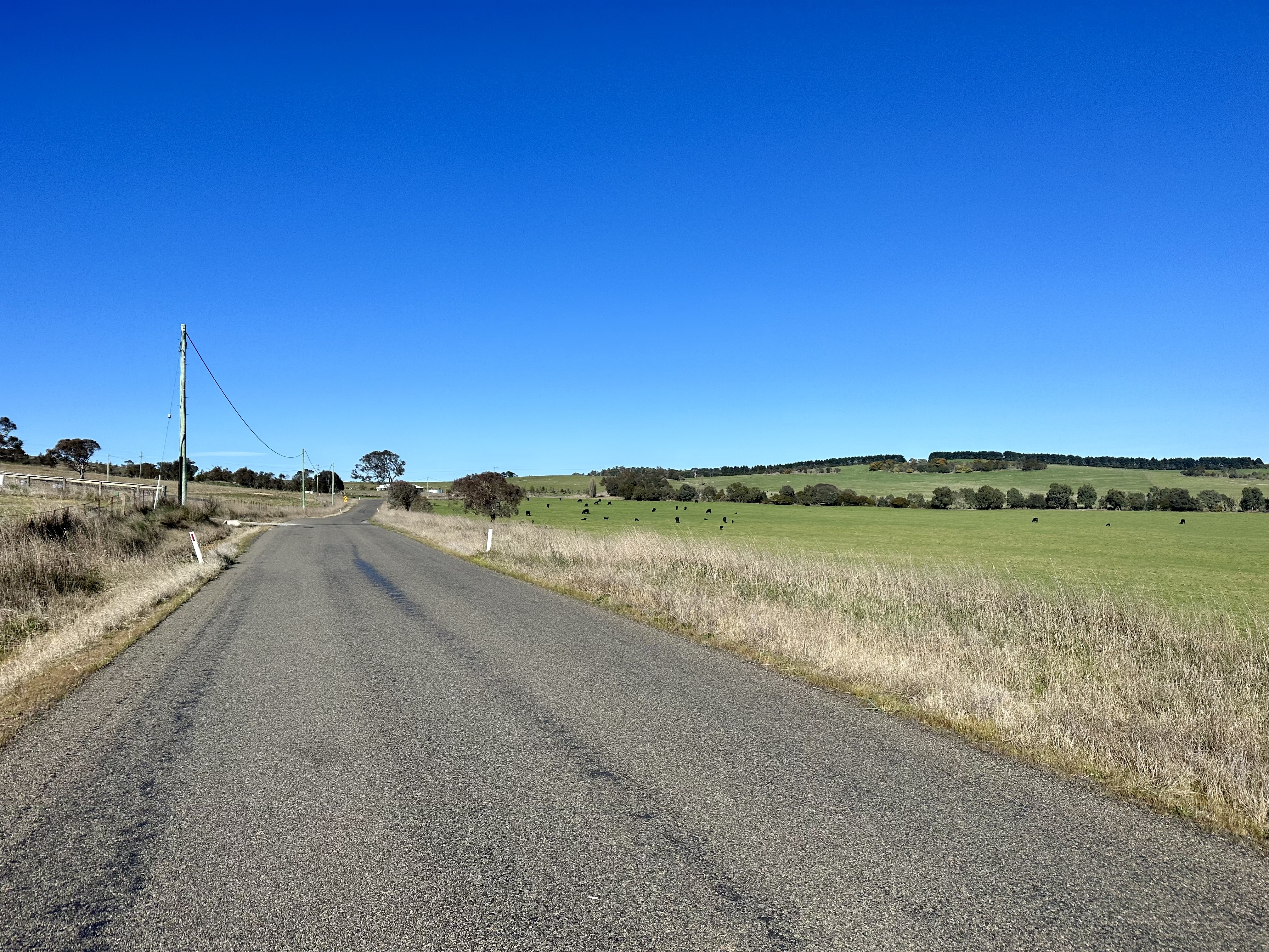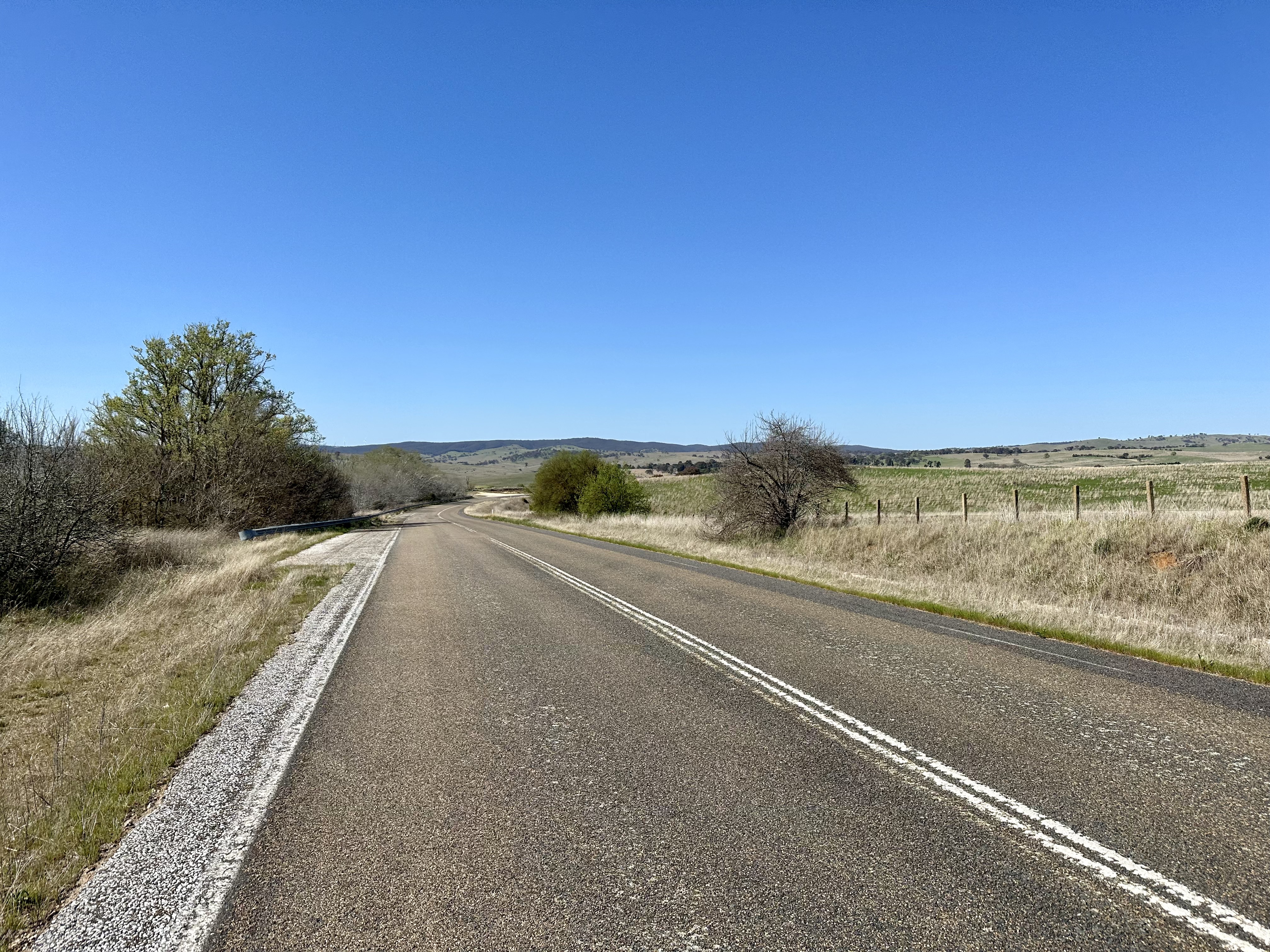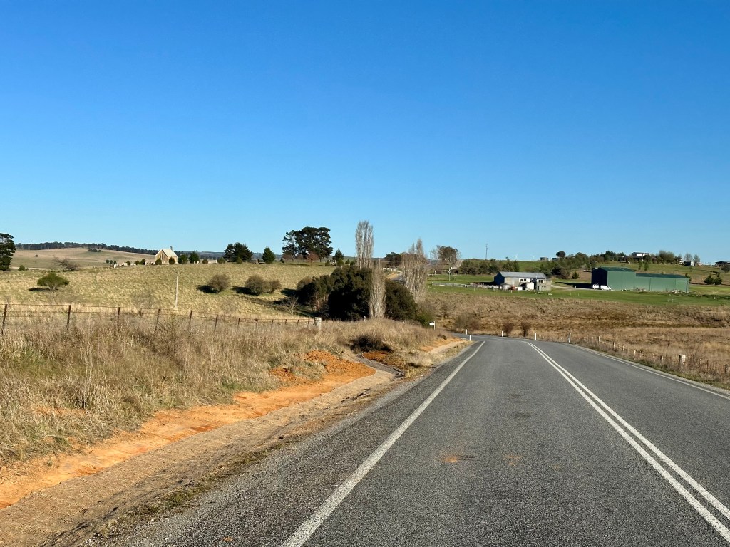 Berrebangalo Creek Road is typical of this area – a combination of local farms and open-wide views as you crest some of the gentle hills. This continues on the final stretch into Gunning via Lade Vale Road. Despite being sealed, this also seems to have quite limited traffic.