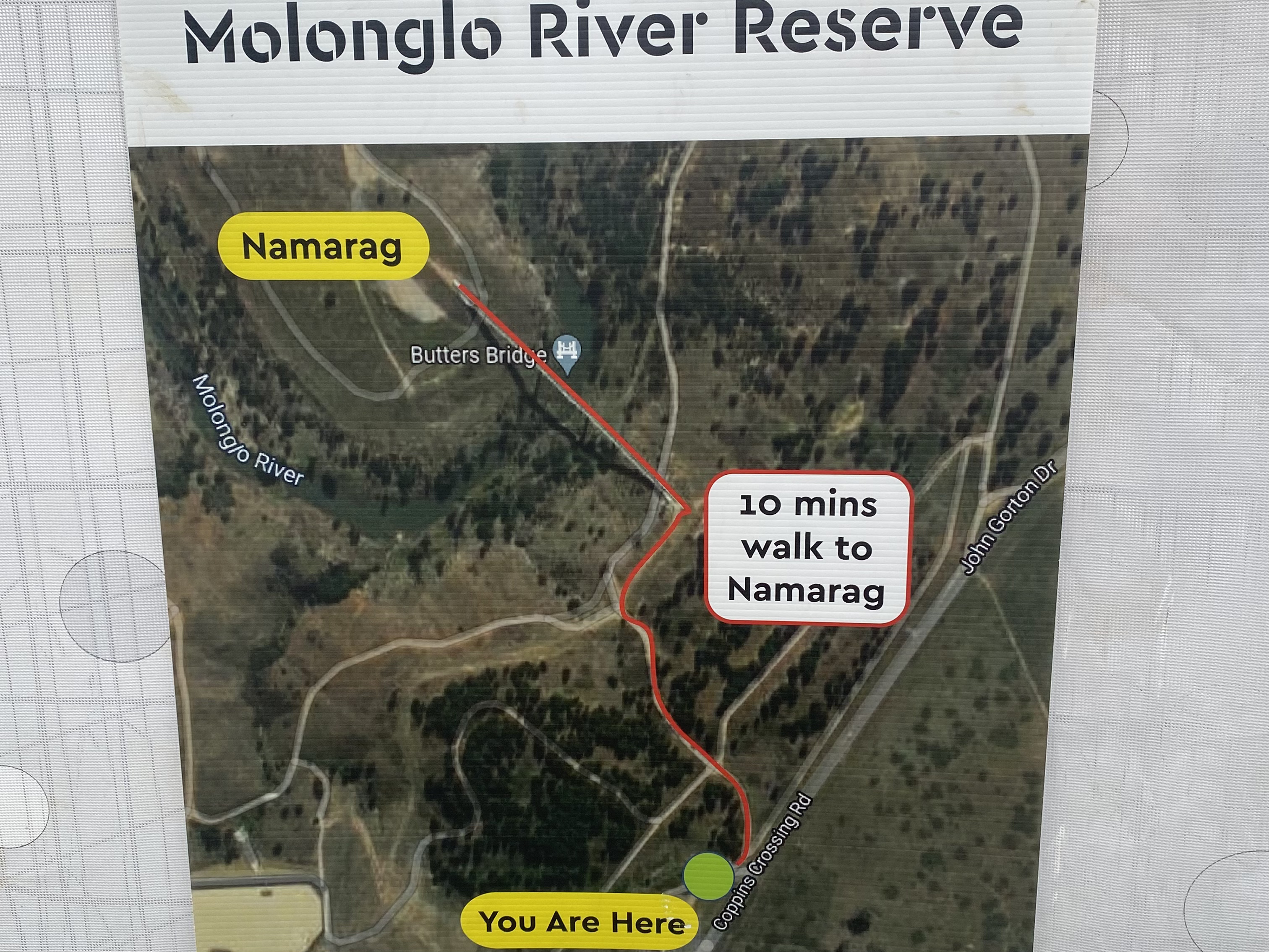 - There are a few different trails through the Kama part of Molonglo River Reserve – don’t get too stressed if overall you keep heading north towards William Hovell Drive.