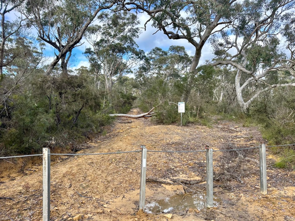 At the end of Yalwal Road the trail immediately is signposted as “not maintained by the council”. Or anyone really. This is where Yarramunmun Fire Trail starts, and quickly becomes almost 2km of steep hike-a-bike, interspersed with muddy sections.