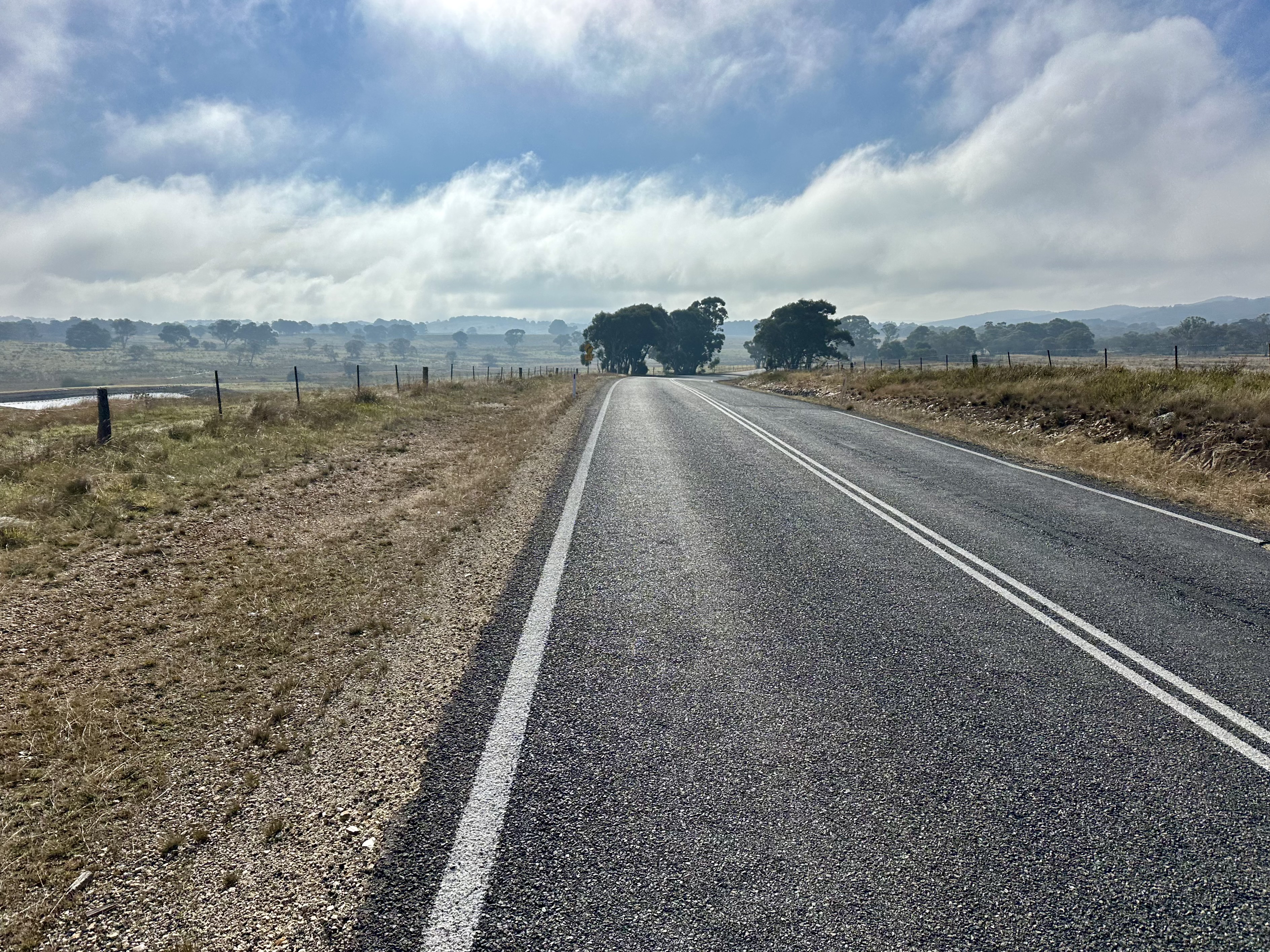Day 1 is very much not part of the AOTB route, but was designed to allow the return trip to Canberra. While we made sure to travel through the first “Bun” (Bungendore, for a bacon & egg roll with coffee breakfast fuel-up at The Gathering), it is only at Tarago that the route becomes something worthy of the rest of the route. Why? Bungendore Road is the least enjoyable part due to the truck traffic. At least the sun came through approaching town.