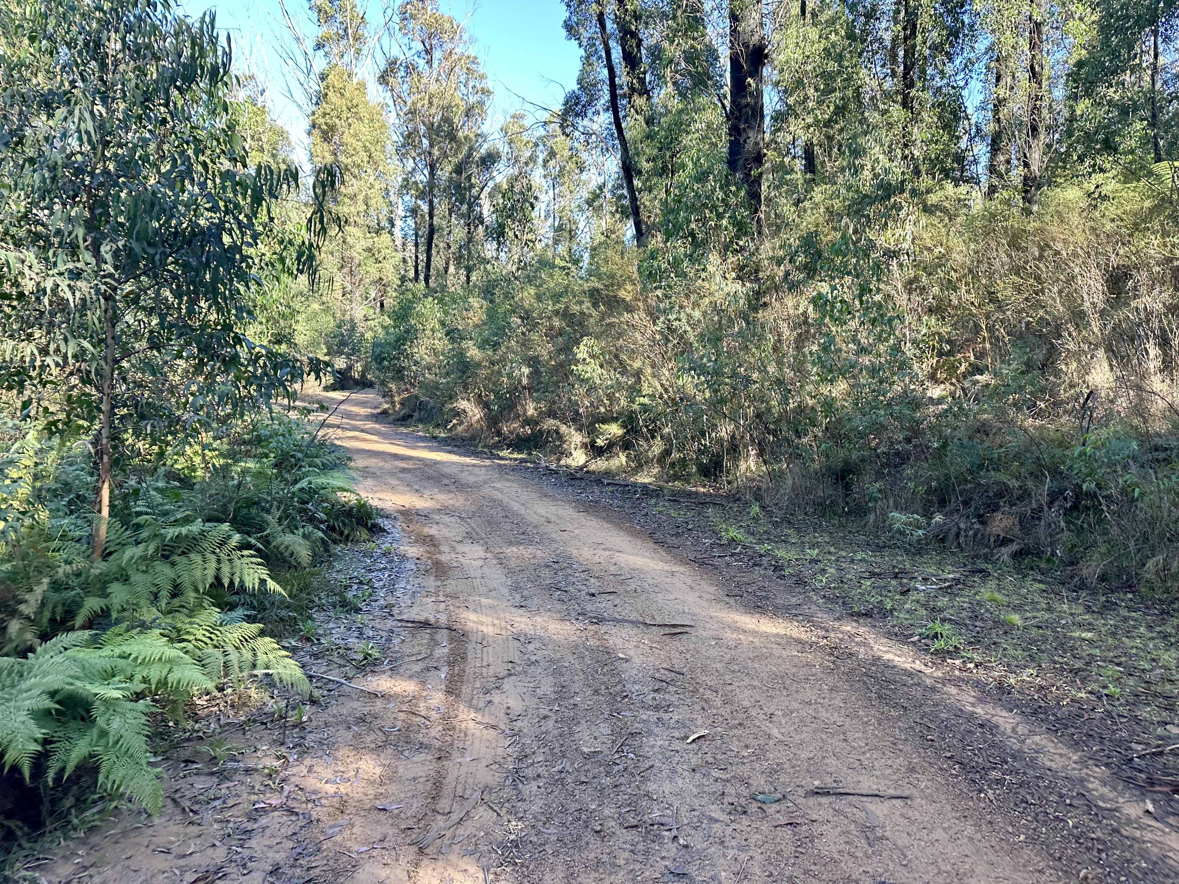 At the end of Yalwal Road the trail immediately is signposted as “not maintained by the council”. Or anyone really. This is where Yarramunmun Fire Trail starts, and quickly becomes almost 2km of steep hike-a-bike, interspersed with muddy sections.