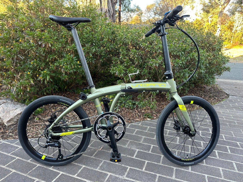 Further research discovered the Polygon Urbano 5, on sale (including shipping) for $AUD 750. Featuring aluminium frame, Shimano drivetrain with 9 speed 11-34 cassette (and better low range gear ratios than the Mariner), Tektro hydraulic disc brakes, and a decent looking seat it seemed so much better than the Dahon. I’ve known a few folk who have bought Polygon gravel and mountain bikes and been really happy with them, and the few online videos about the bike seemed favourable. Whilst perhaps not famous for folding bikes, this Indonesian brand is getting a reputation for affordable and well-built bikes. So I bit the bullet, and a few days later a boxed bike arrived.