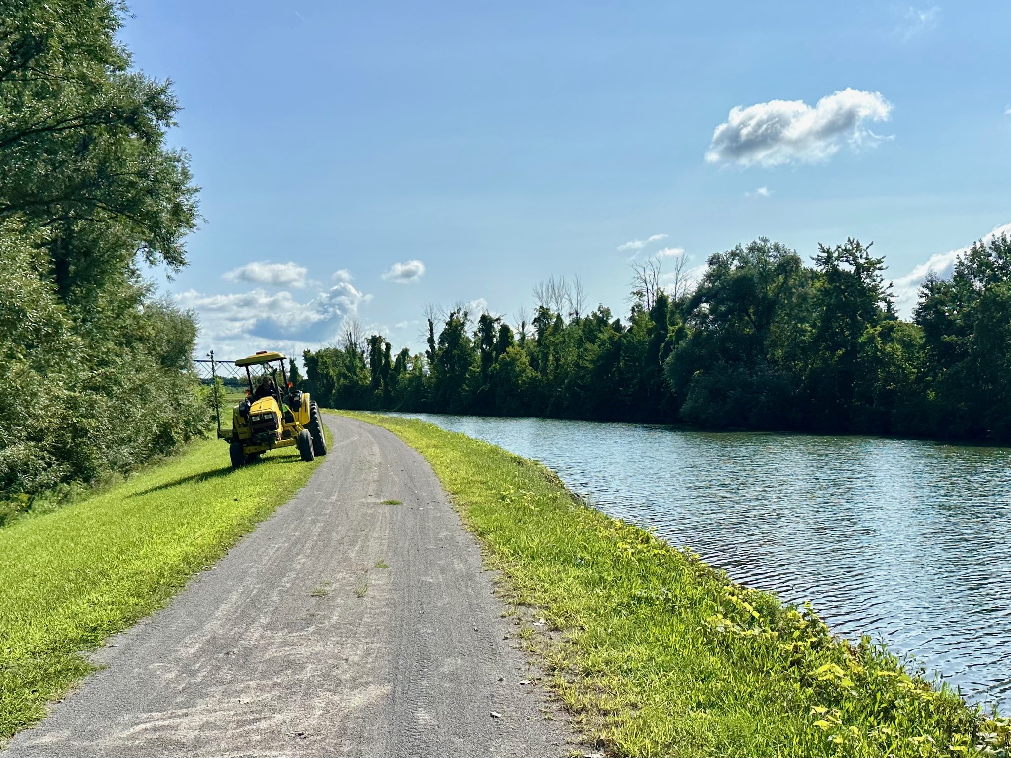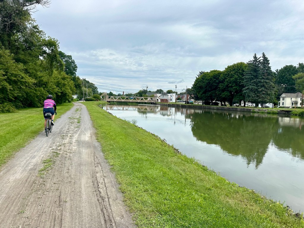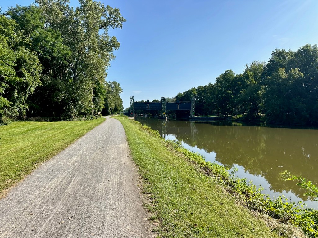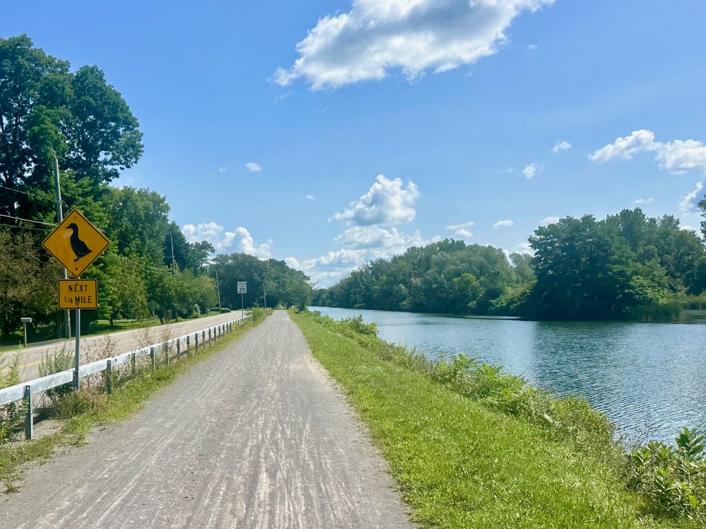 The Canalway does follow the canal route, but is often not beside it. At times this means travel alongside the I-90 freeway (not super peaceful), but in others it is nearby but runs with some separation through farmland.