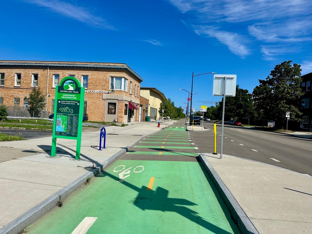 This is not a lowlight, but a spotlight on what could have been one: getting out of the Buffalo metro area. The cycling infrastructure that has been put in place from downtown to start the trail is fantastic – including separated on-road cycling, river-side paths and clearly marked back streets. Top class.
