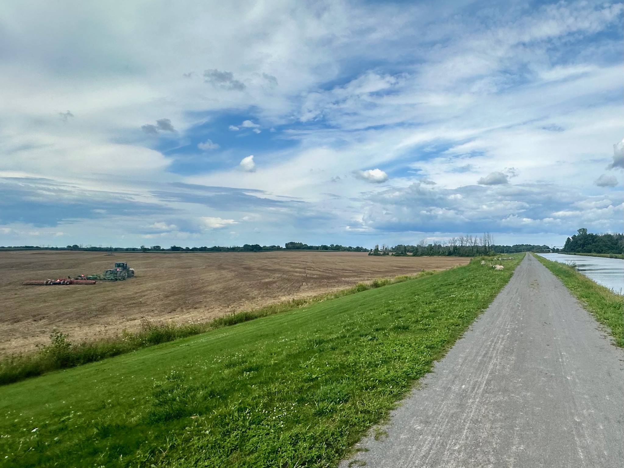 The trail also starts to pass farmland. For example, a current detour takes you onto some quiet rural roads which were surrounded by fields of fully-grown crops. It is not the case, however, that the rural reviews are restricted to off-canalway cycling – you start to see these from the trail too. Super nice.