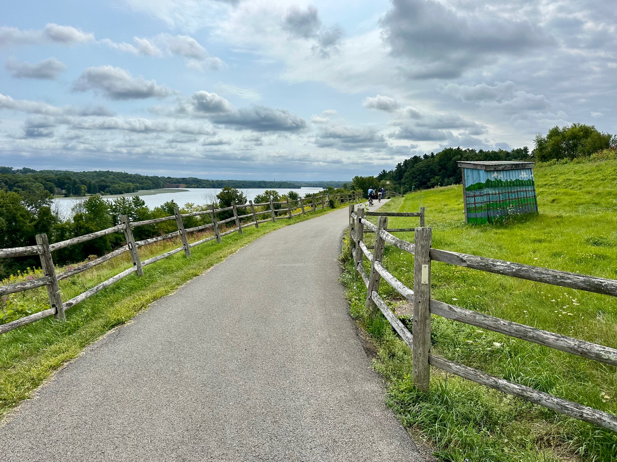 A transition in the nature of the Canalway trail starts to occur around Geneva. While the Seneca River is used by boats, the canal you start to follow from Port Byron is the older disused canal. In some parts, this is really obvious, but in others not so much. This often corresponds with paths that are closer to single track, although our experience was that this does not affect the cycling. The trail also remains scenic, and in some cases includes history that is missing from the modern canal.