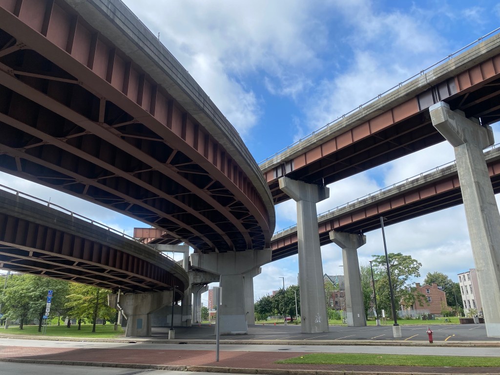 What is the story with Riverlink park in Amsterdam? There is a fantastic pedestrian bridge over the Mohawk River and some interesting art in the park. But do you think that you can then get to downtown Amsterdam (across the railway)? Nope. Odd.