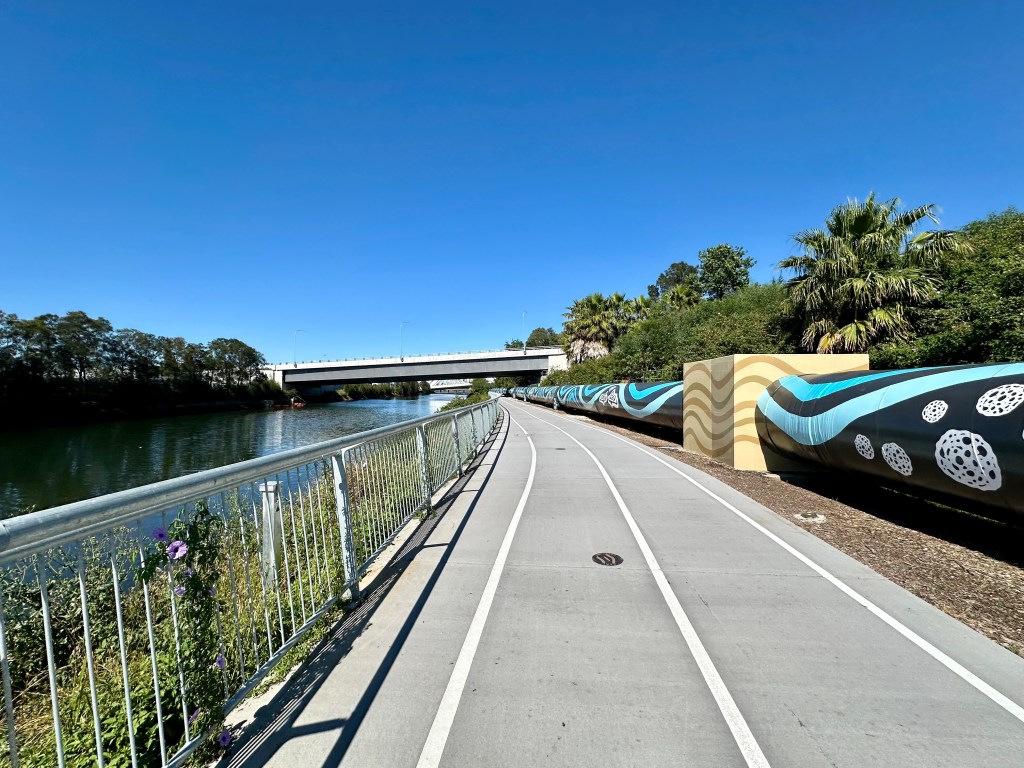 There is no issue with taking a bike on Sydney trains, including metro and intercity services. This is very useful given the extent of the network. You can also take the train directly from the airport. It is, however, significantly more expensive than starting at Mascot or Wolli Creek stations – as at November 2024 $17.24 is added to the fare for using an airport station. This is a lot when the peak fare from Wolli Creek to Glenfield is only $6.01. And the further good news is that while it gets a little confusing close to the Wolli Creek station, there is great cycling infrastructure to connect to the station directly from the airport.