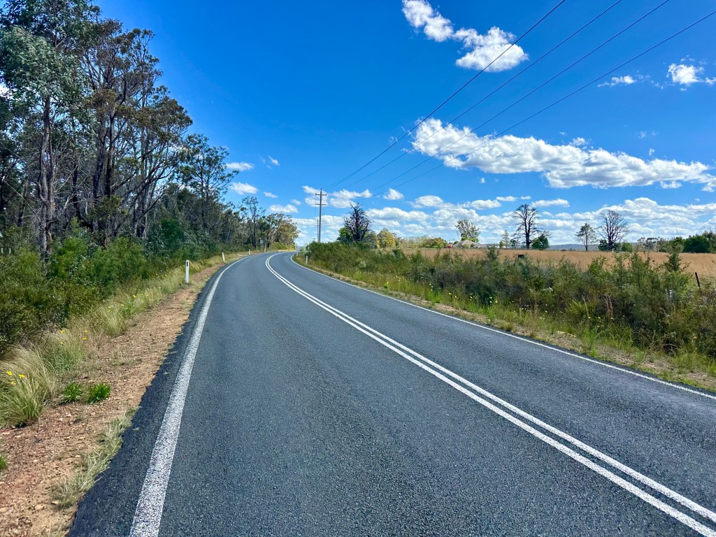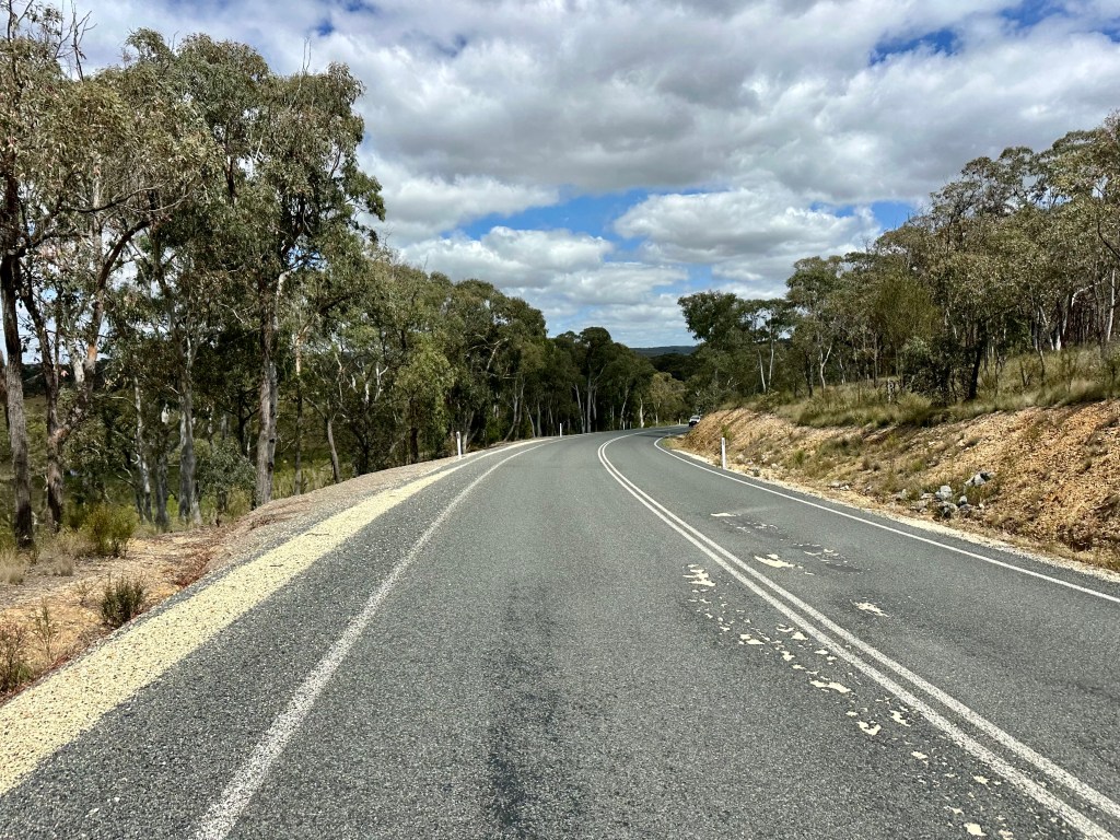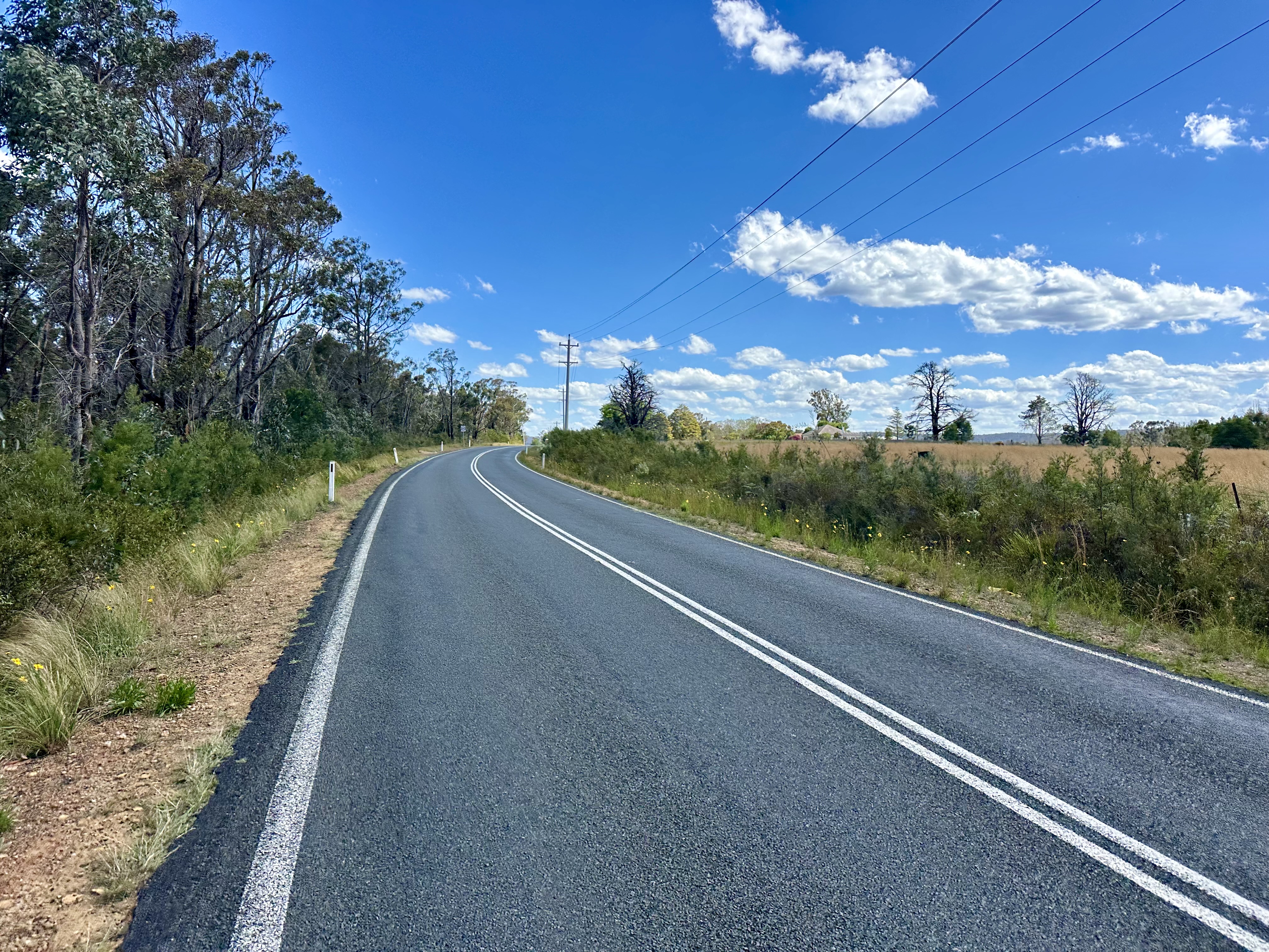 Unfortunately at the end of the Highland Way there is a short Hume Highway stretch to get into Marulan (where there are bakery, cafe and supermarket options for a refuel). To get to the backroad Goulburn route you have to rejoin the highway at the northern end of town, pass the BP and then exit onto Jerrara Road. Thankfully the required 3.5km provides a verge that is massive, albeit full of debris.