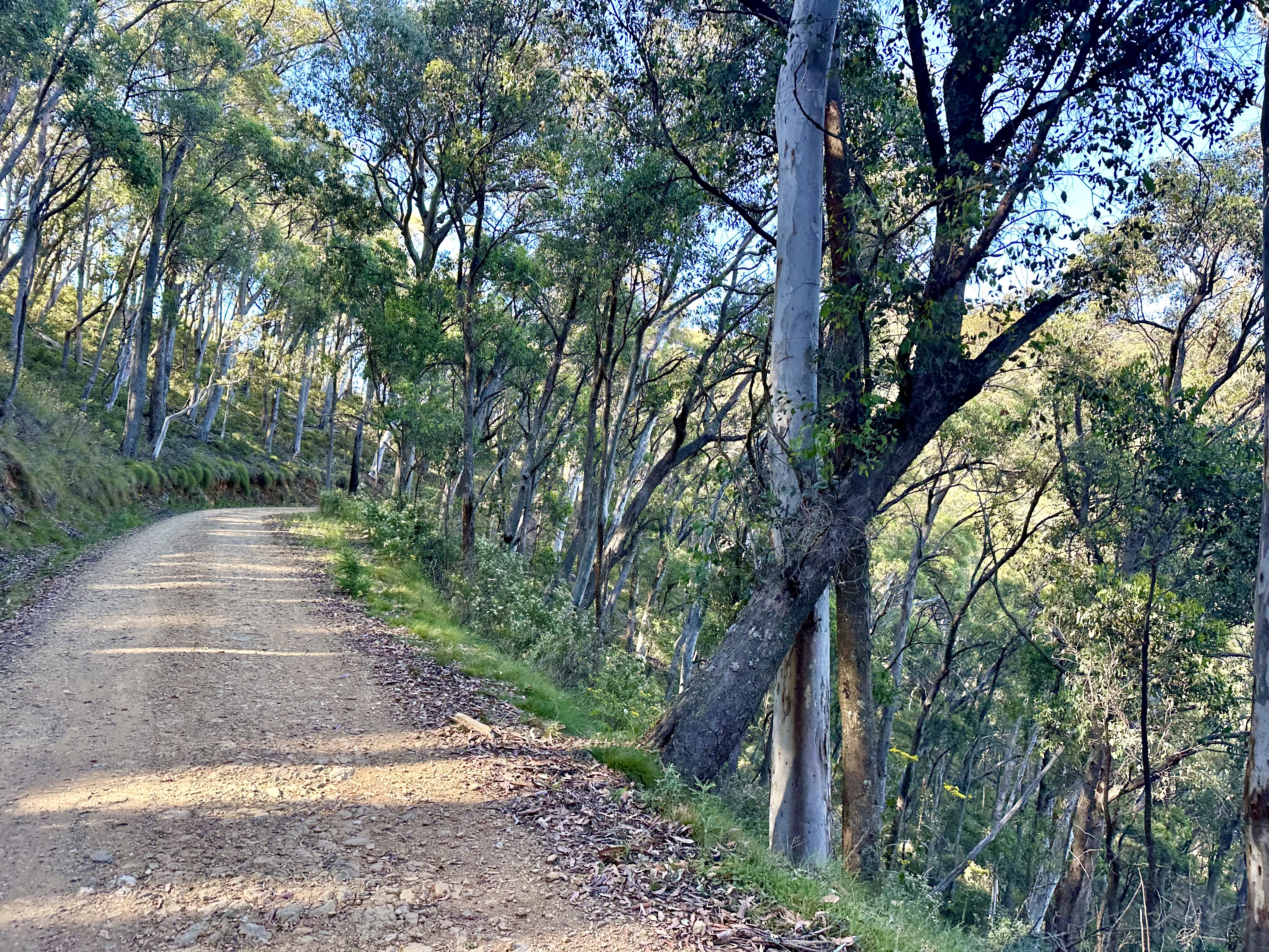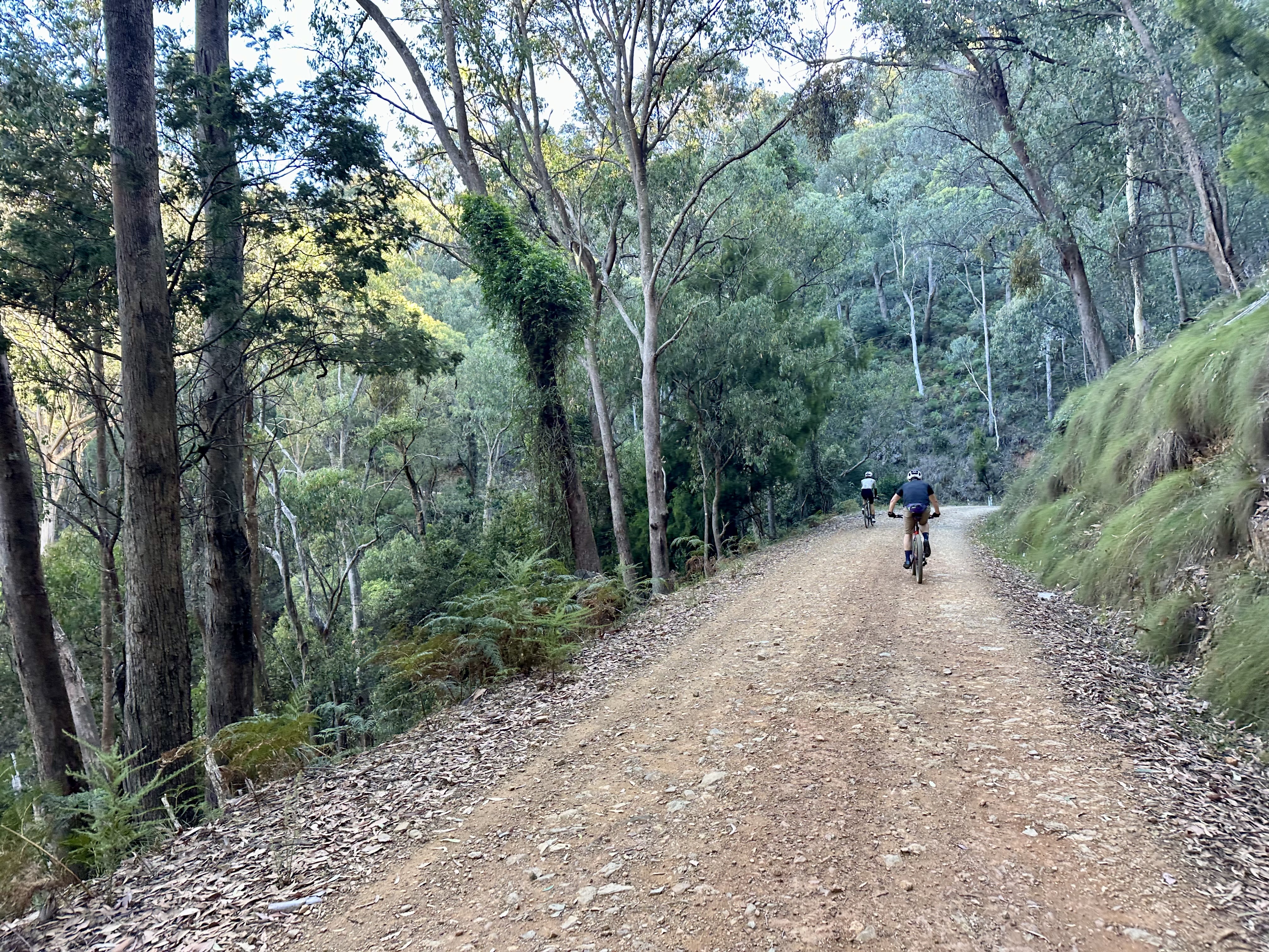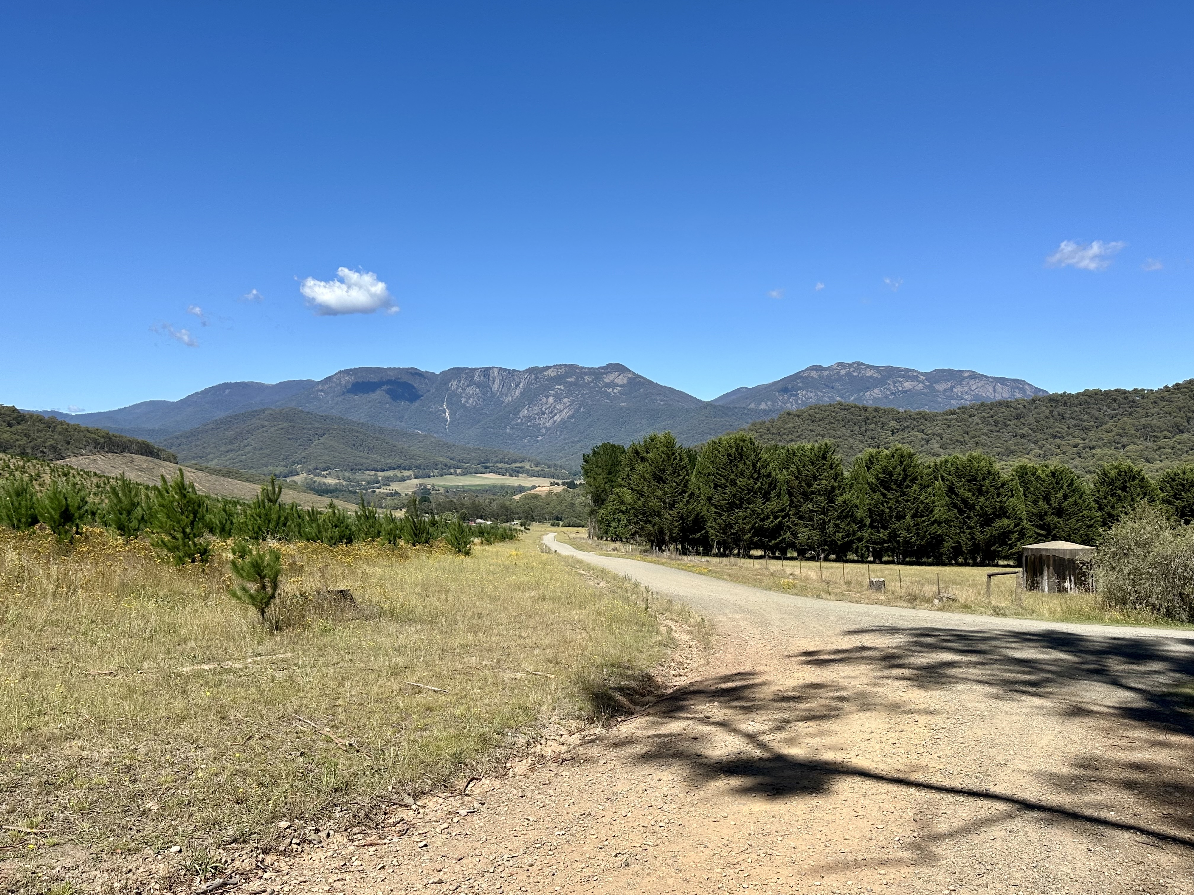Including a steep in-town start, Mount Porepunkah road is initially sealed but then opens up into some flowing (and not terribly steep) gravel running beside and between forests and farms.