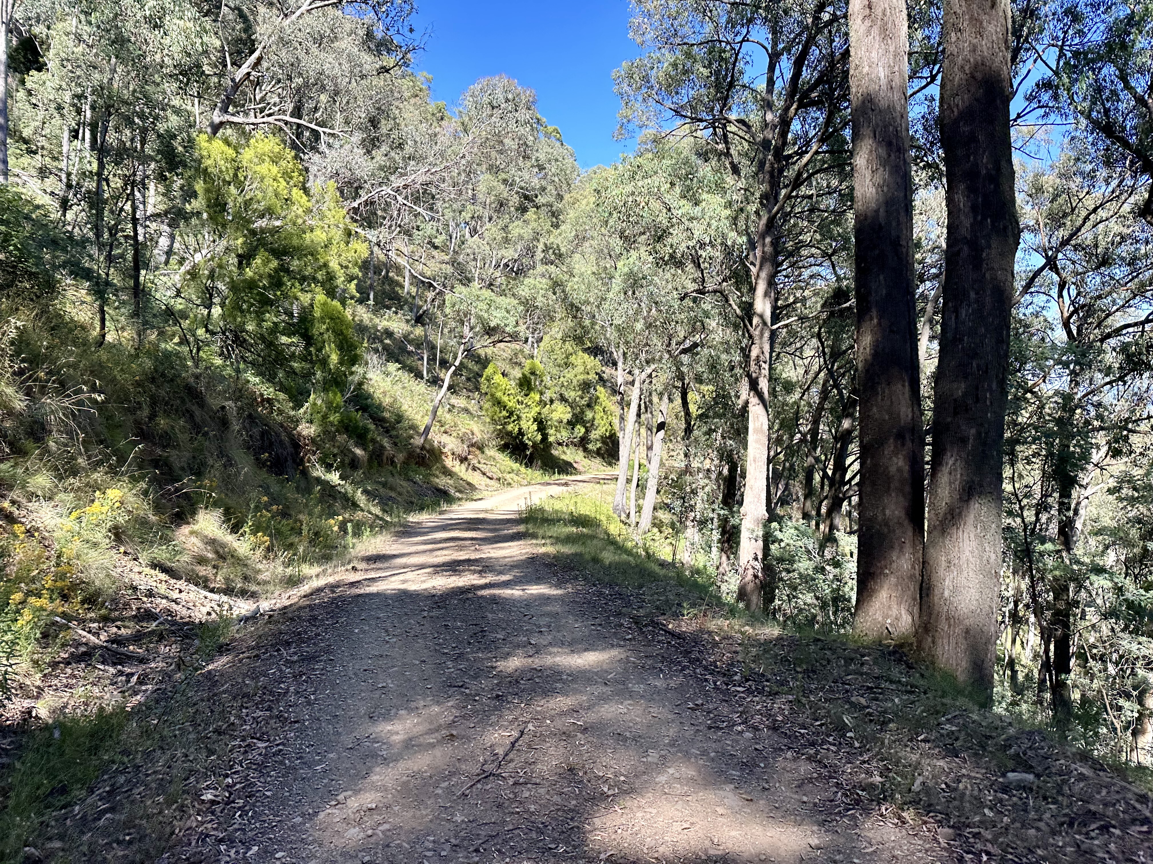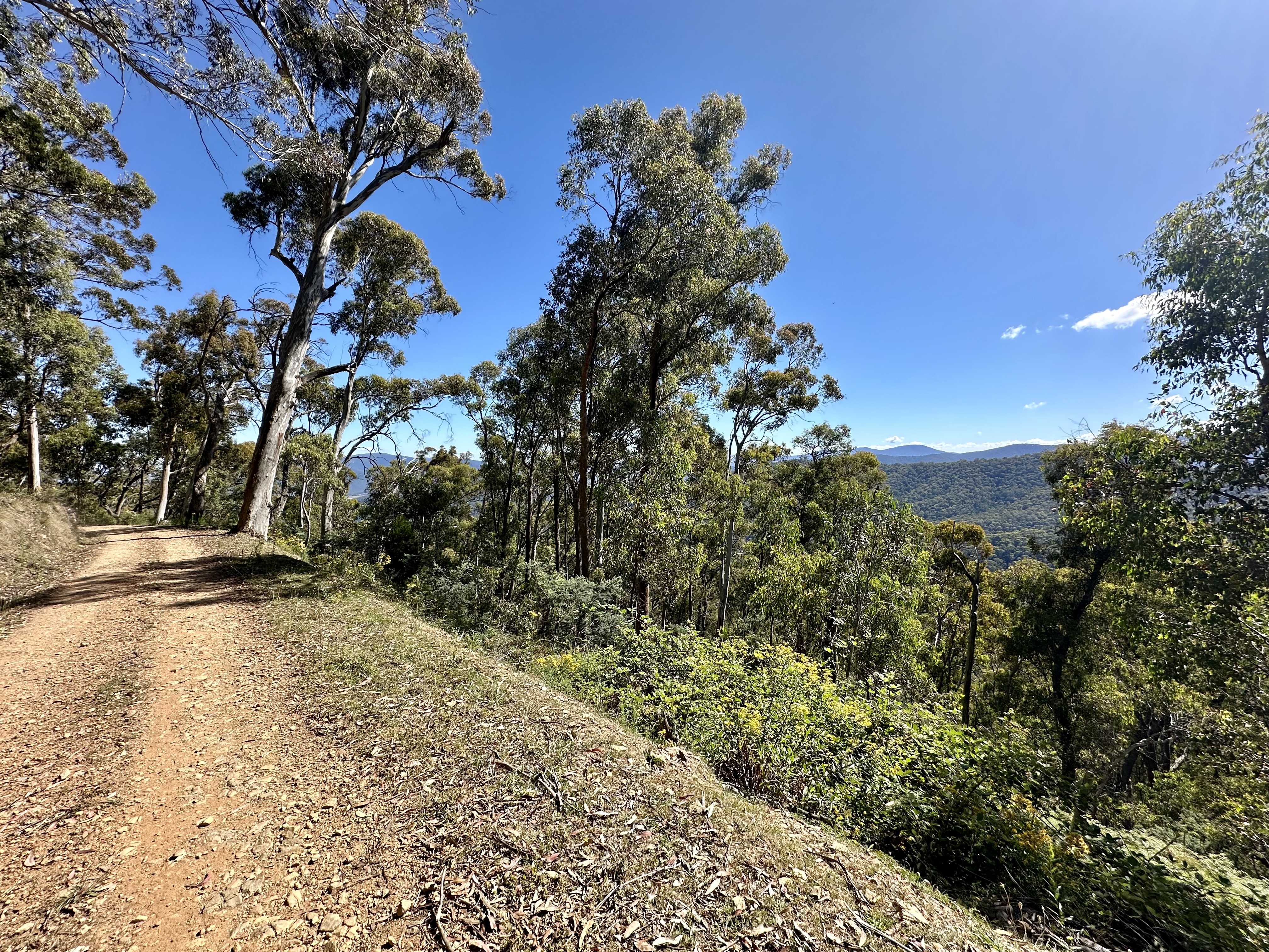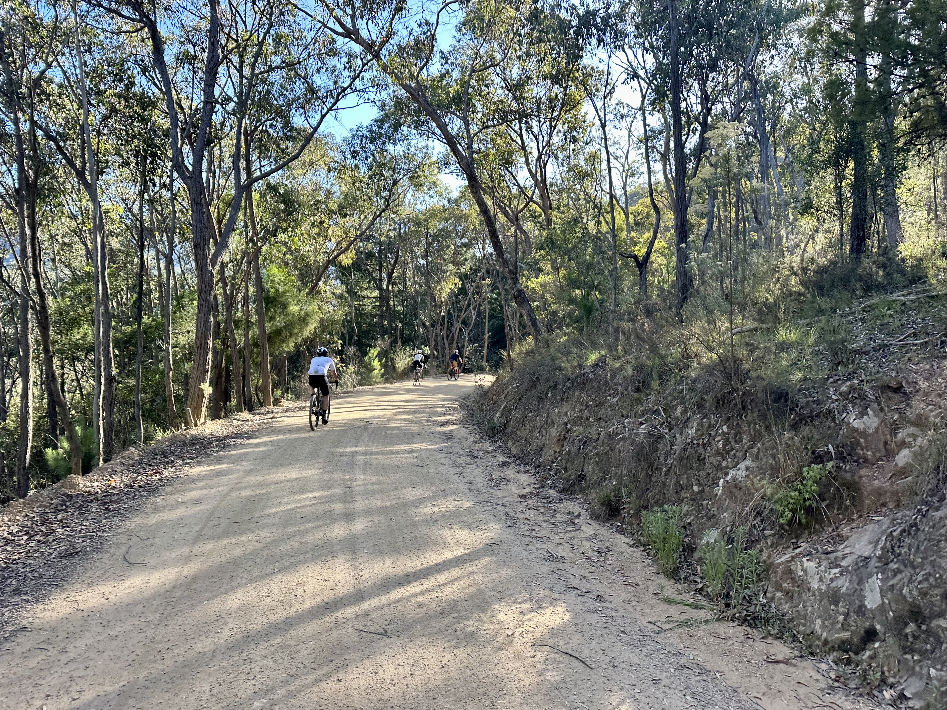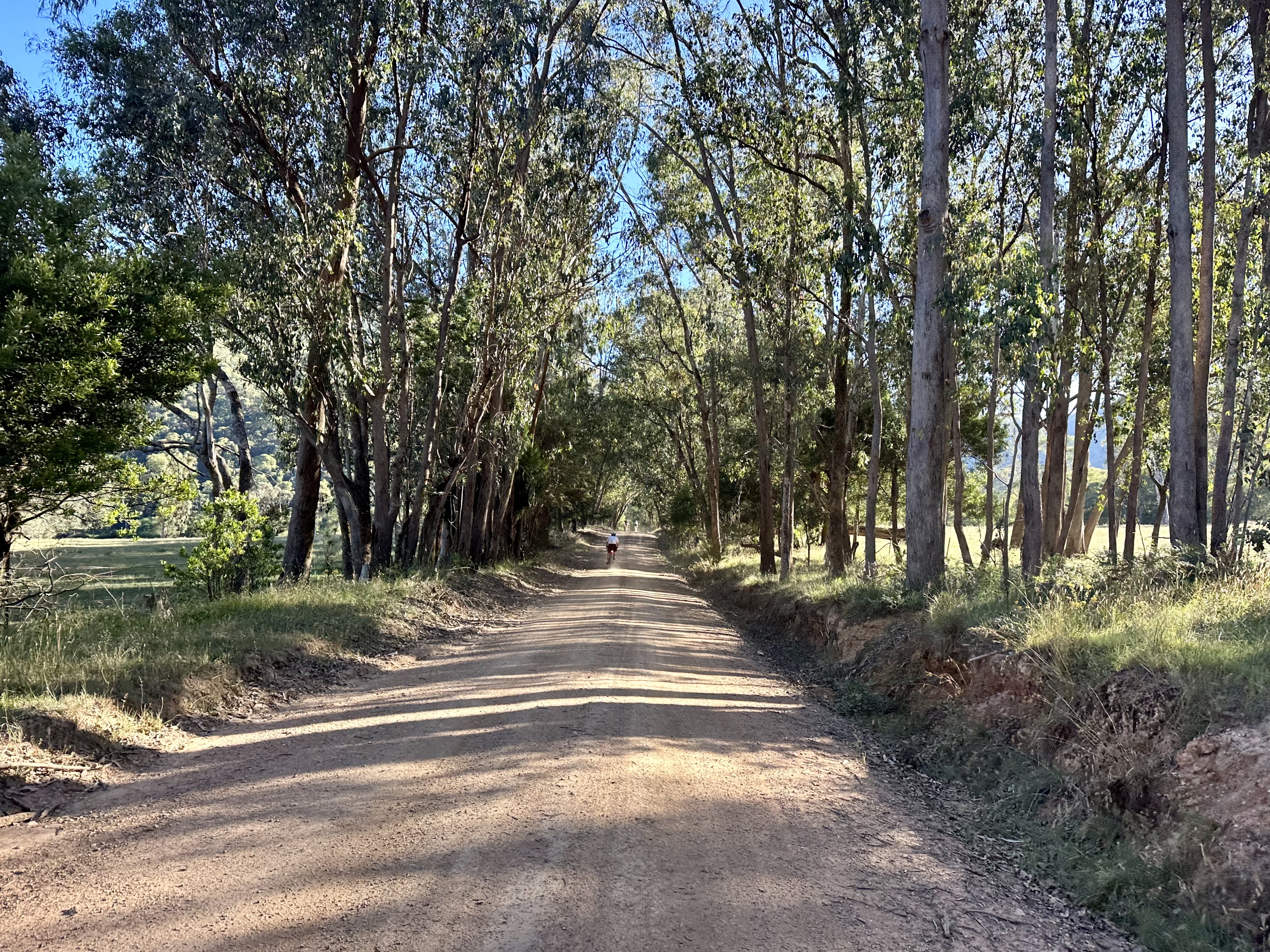 Including a steep in-town start, Mount Porepunkah road is initially sealed but then opens up into some flowing (and not terribly steep) gravel running beside and between forests and farms.