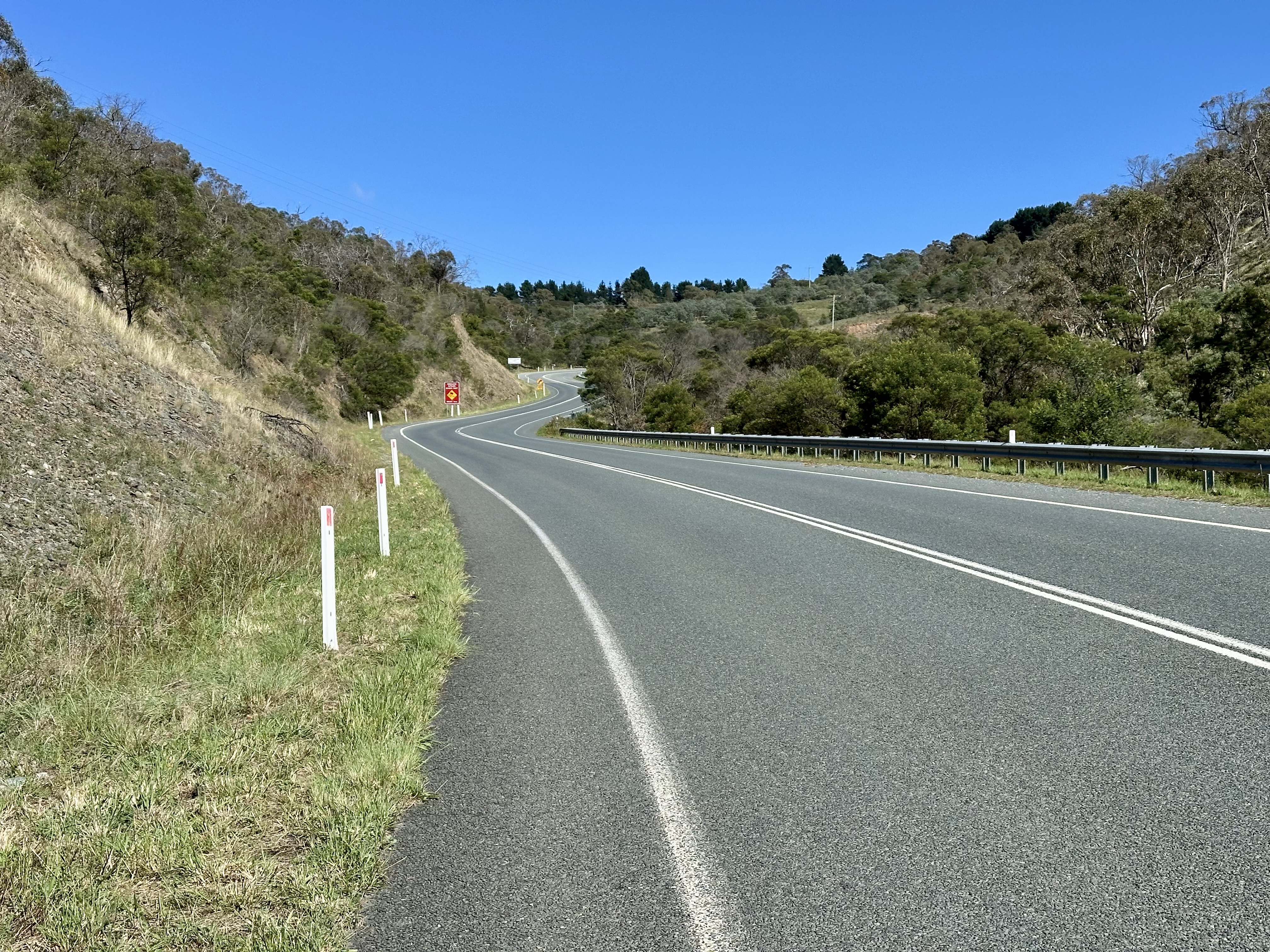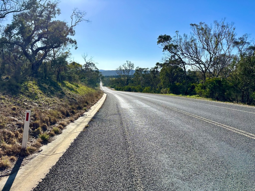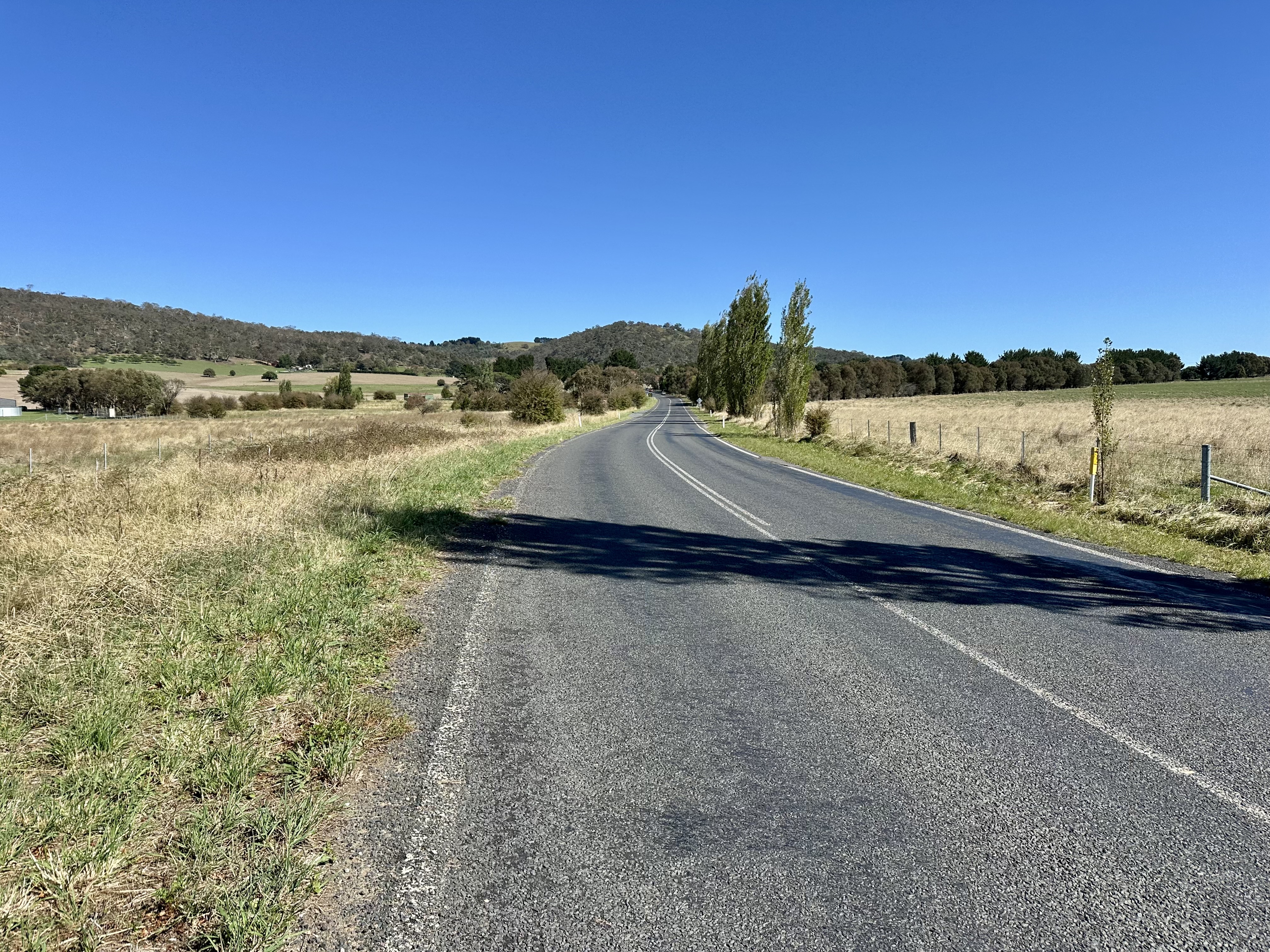 Shingle Hill Road provides a super fun gentle 11km descent to Sutton Road. This road is a main route for traffic connecting onwards from Bungendore to Yass (via Murrumbateman) so you do get the occasional caravan. But, I just love this road – it is quick, scenic and whilst not far from Canberra, it feels a long way away.