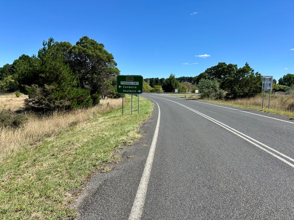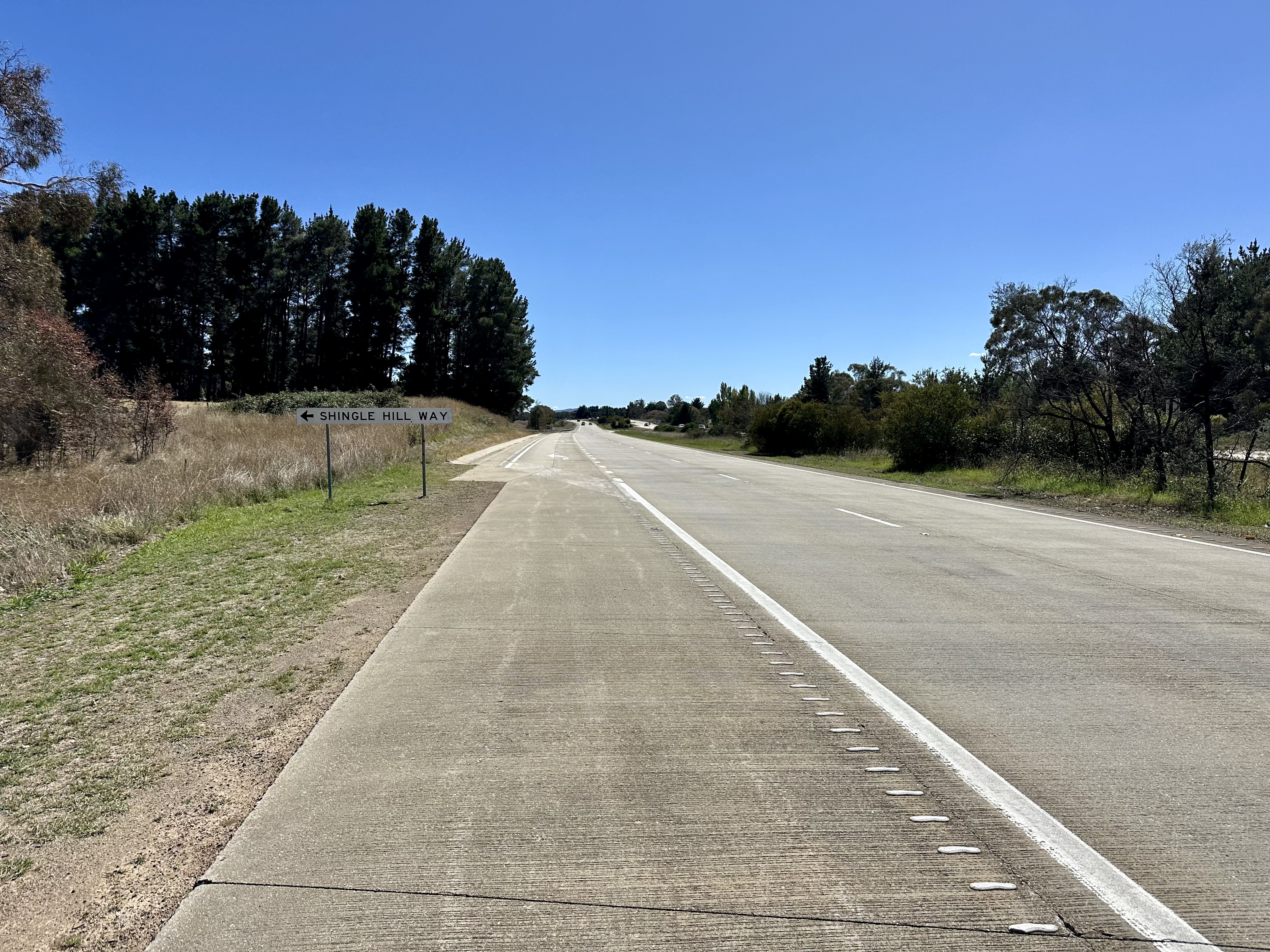 Bungandore Road ends up at the Federal Highway, and after a quick right then left you can connect to Shingle Hill Road. At times this crossing can take a little while due to frequency and speed of traffic.