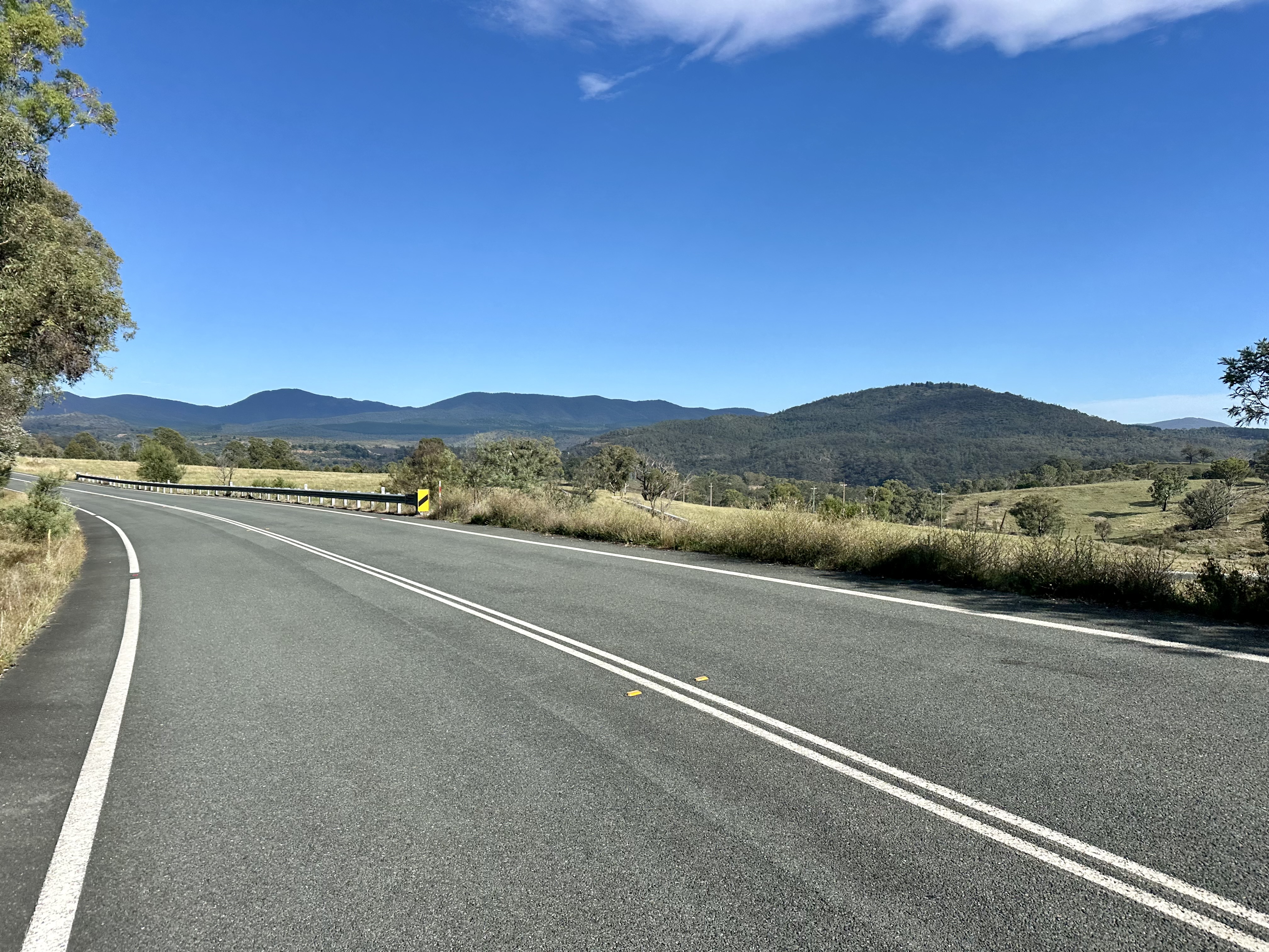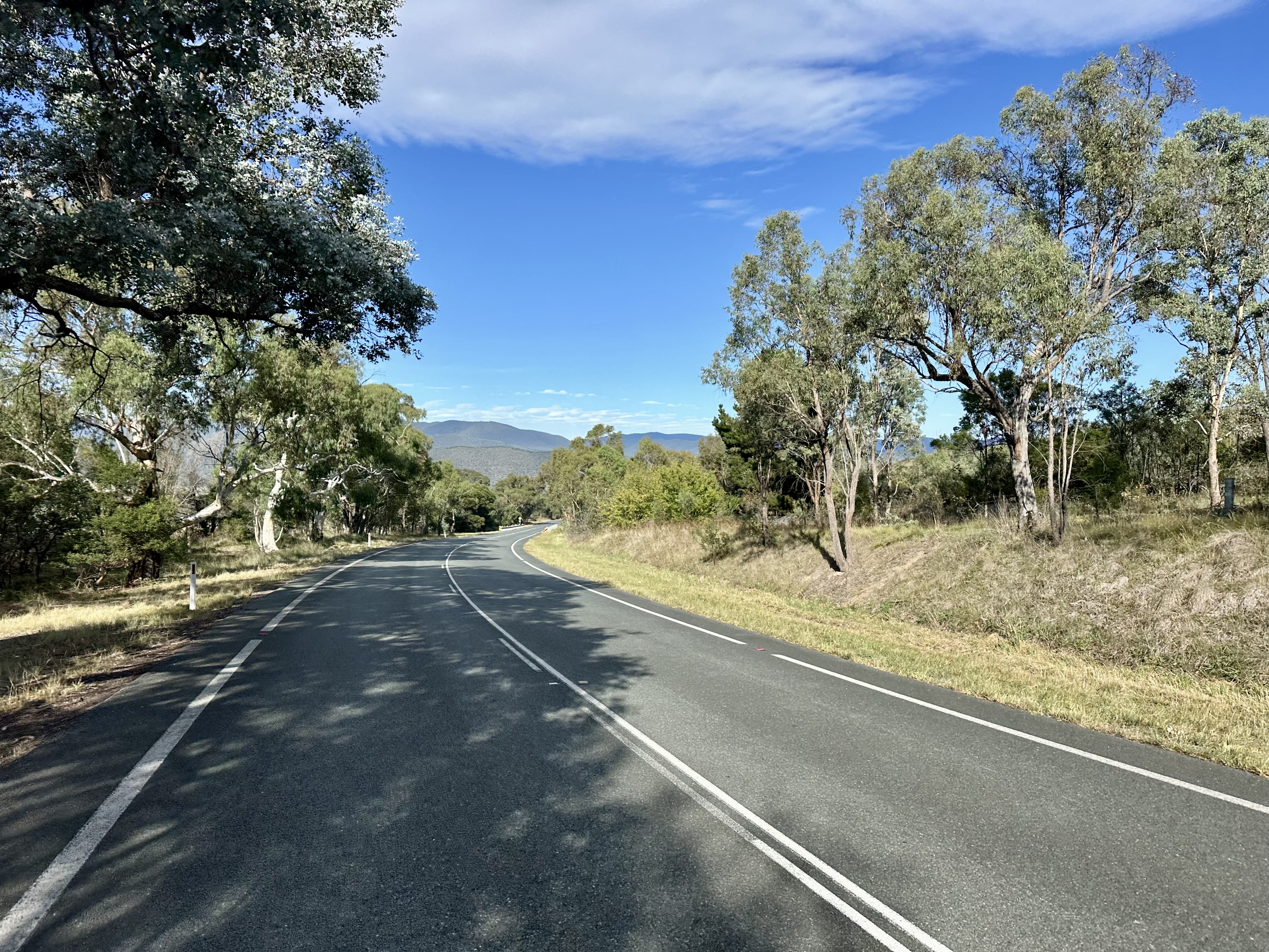 Don’t be fooled by these roads, though. There are some pretty steep bits as you go up and down. All of which are topped off by the grind up the three sisters on Uriarra Road, delivering you back to Canberra via Denman Prospect.