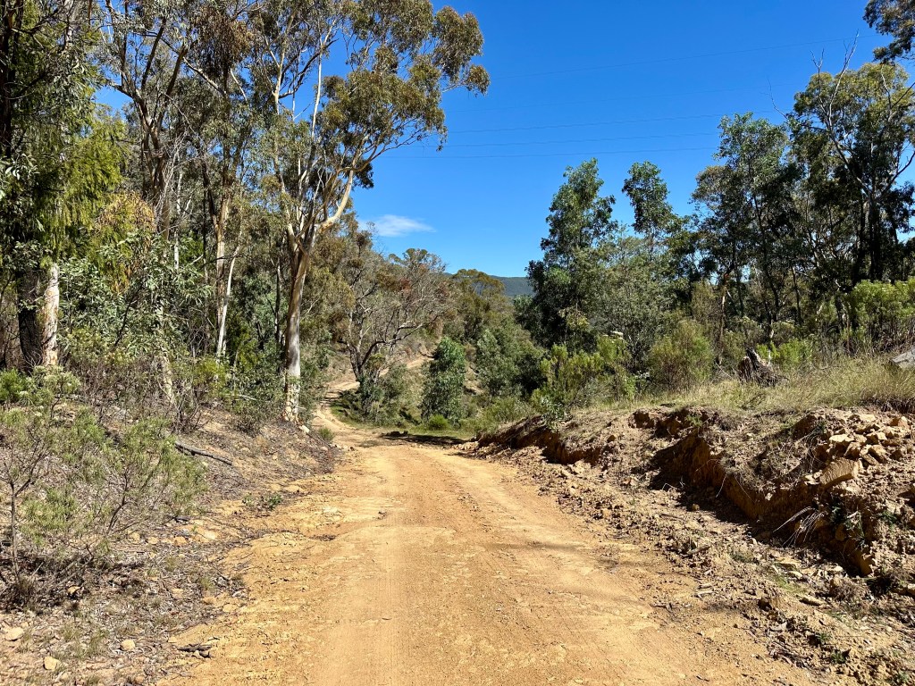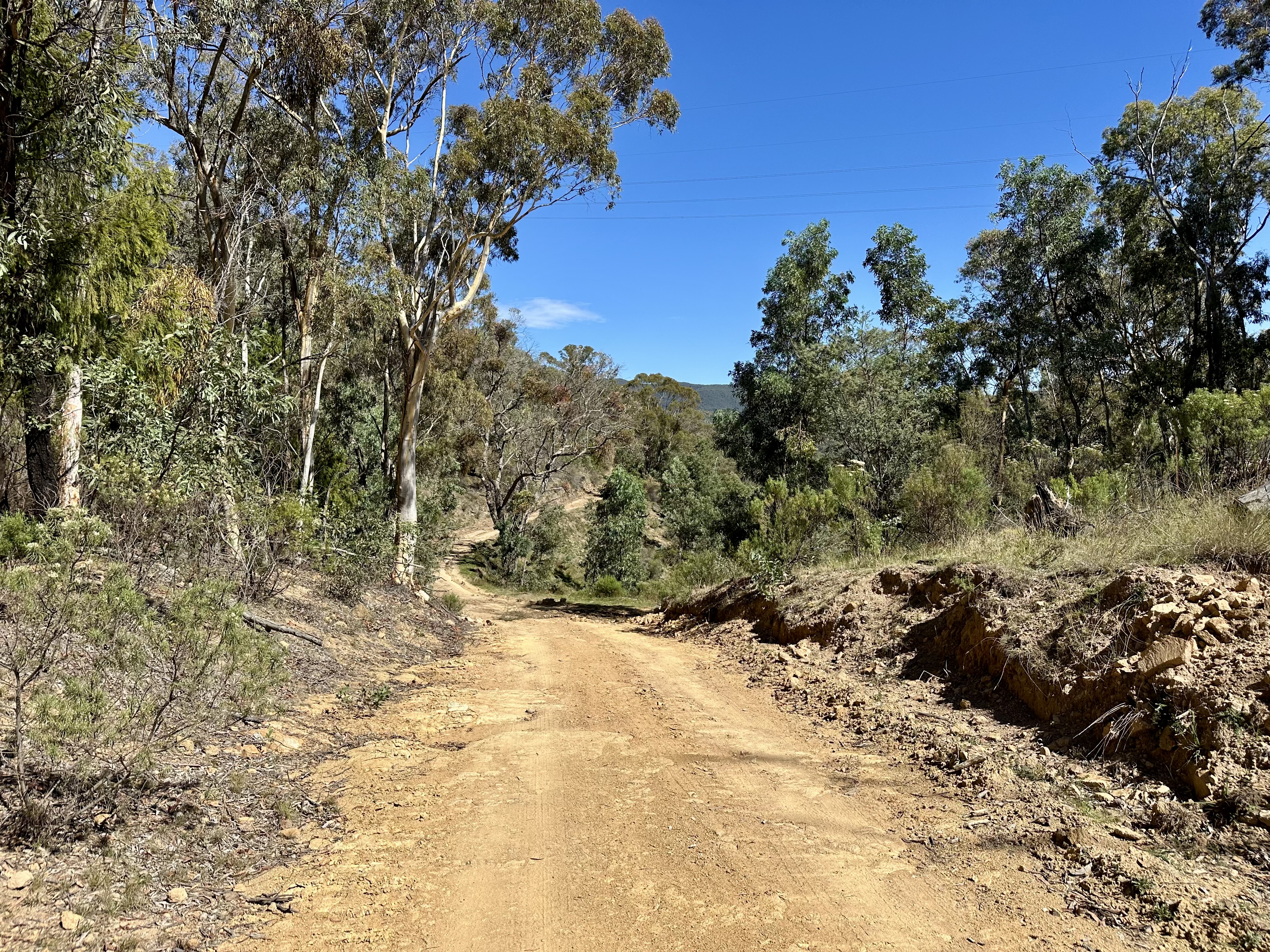 Initially Two Sticks Road is a similar gravel road to Mountain Creek – well maintained and clearly used as a way to get to a number of properties in the area. After a few kilometres, however, the road is poorly maintained. I initially had a misadventure into someone’s drive – so unlikely looking was the “road” (“Surely this well maintained route is the road, not that hike-a-bike track?” Wrong….). Thankfully, you just need to press on for 2.5km to the boundary with the Brindabella National Park where things improve a lot. I suspect that this has to do with this short section of the road being a bit of an orphan between the ACT border and the National Park – the council is not that motivated to maintain the route.