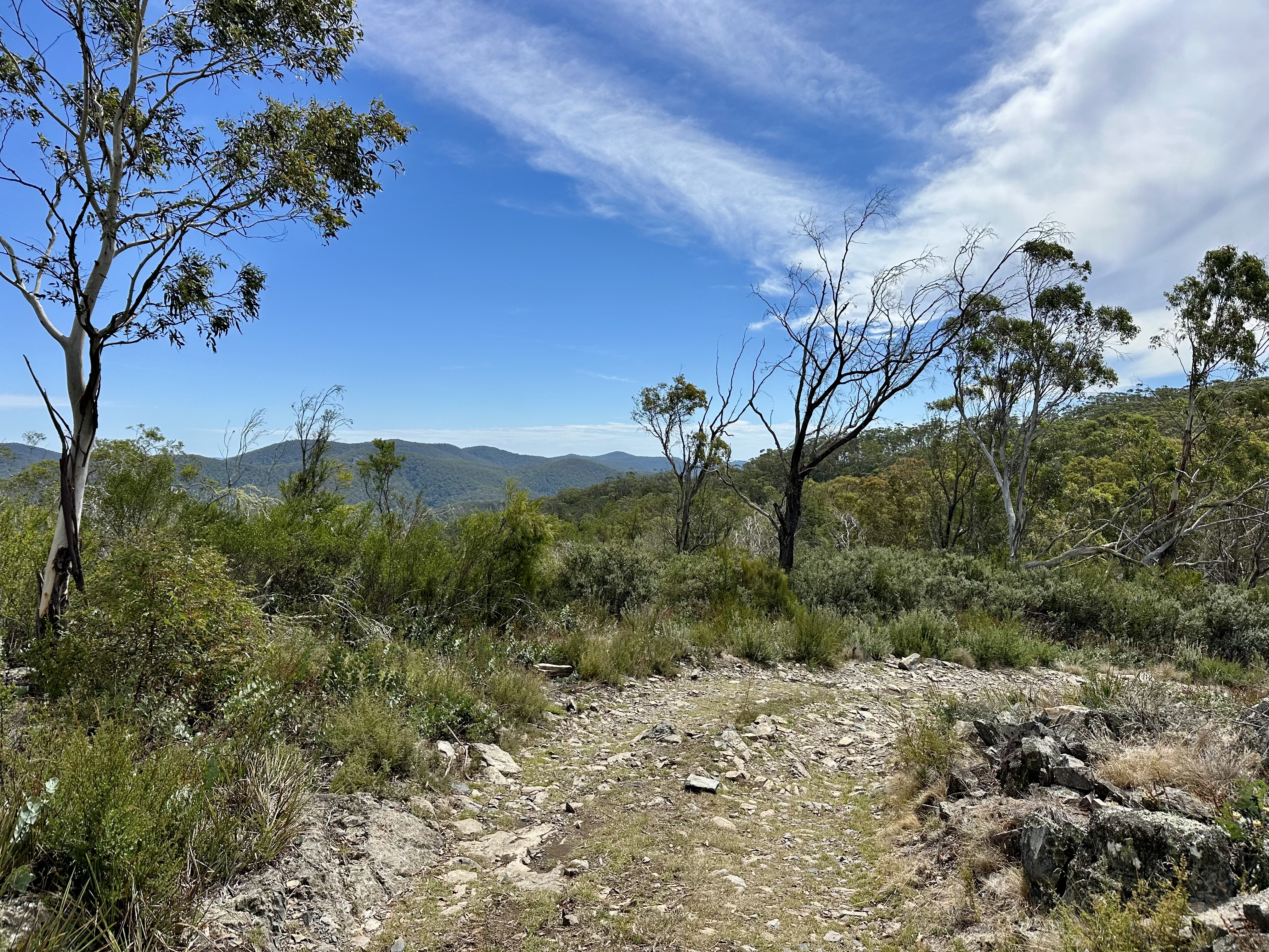 At the top of the range there are spectacular views. The track does have some loose shale, but gosh the high country views to ranges and valleys are fantastic. Totally worth the push through.