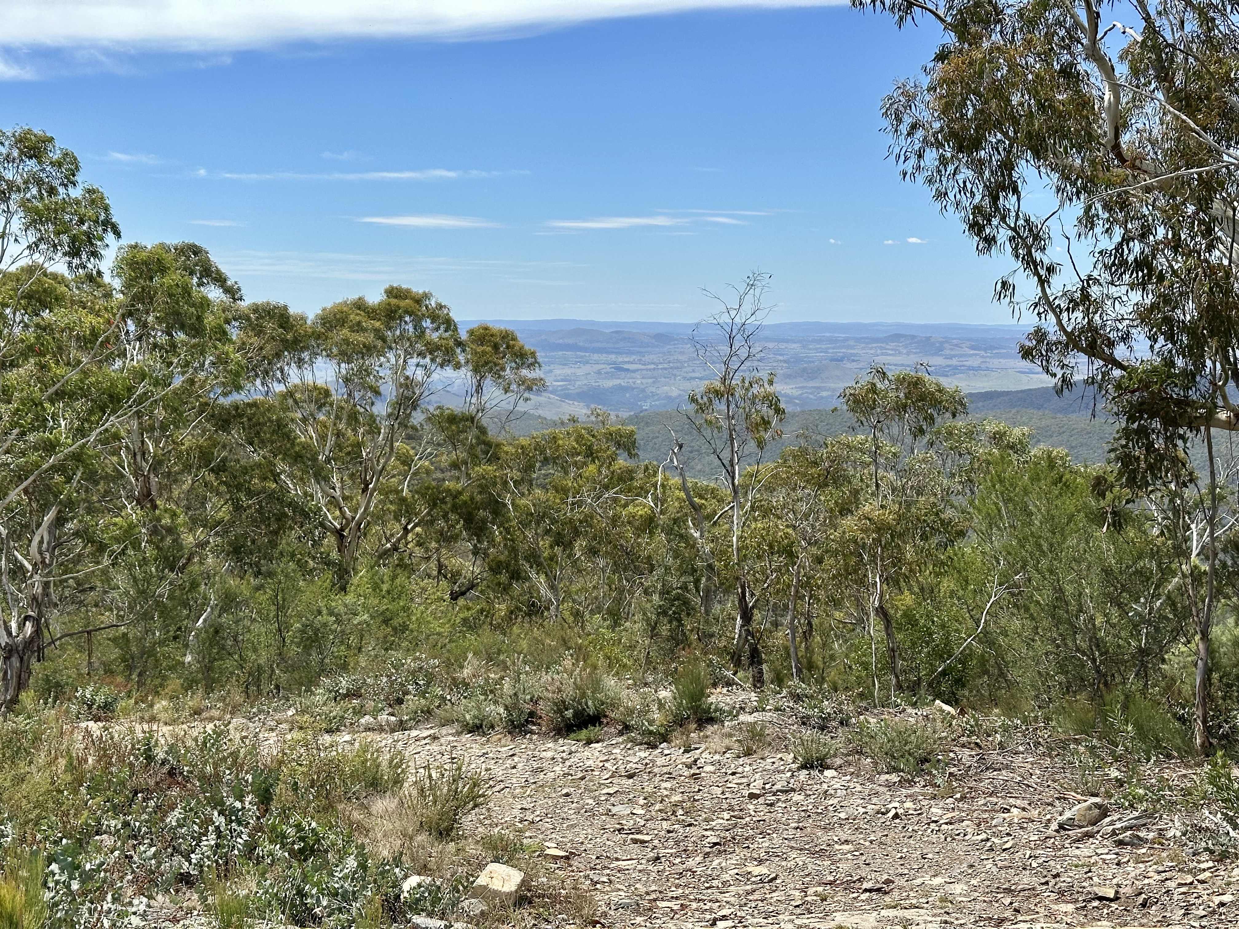 After some fun descent (at times requiring some caution, but nothing too sketchy) the track connects to Doctors Flat Road. This provides a resumption of travel on maintained gravel road, and it even had some occasional truck traffic due to some road works on a side road. Passing through forest, rural properties and up and down a few hills, it made for hot work on this particular day. Prior to joining the sealed road that takes you through to Wee Jasper, however, there are some fantastic views.