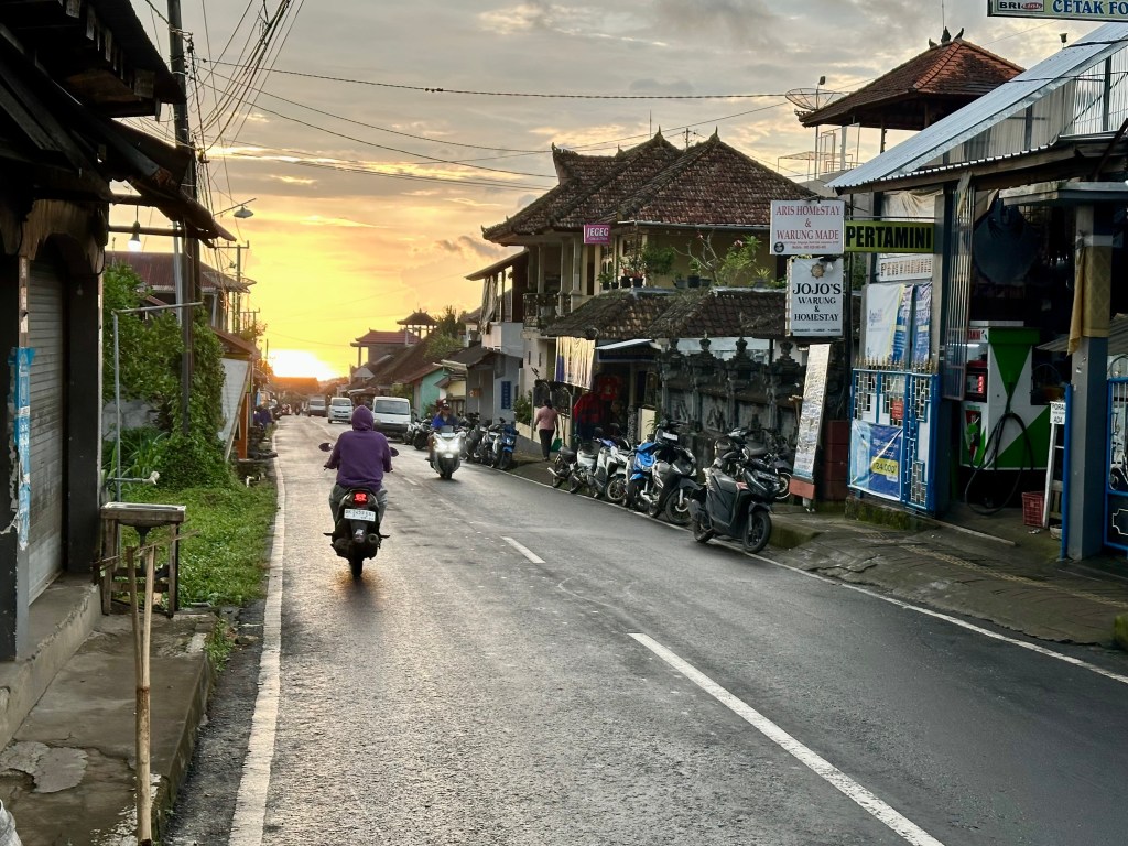 Consider a location like Ubud to start/end. The traffic north and west of Denpasar is not great. I really benefited from getting a transfer to Ubud, from where it was not a long ride to get away and into rural Bali. The other benefit of the transfer was that it provided me an opportunity to observe traffic flow and behaviour – super helpful in advance of cycling in it.