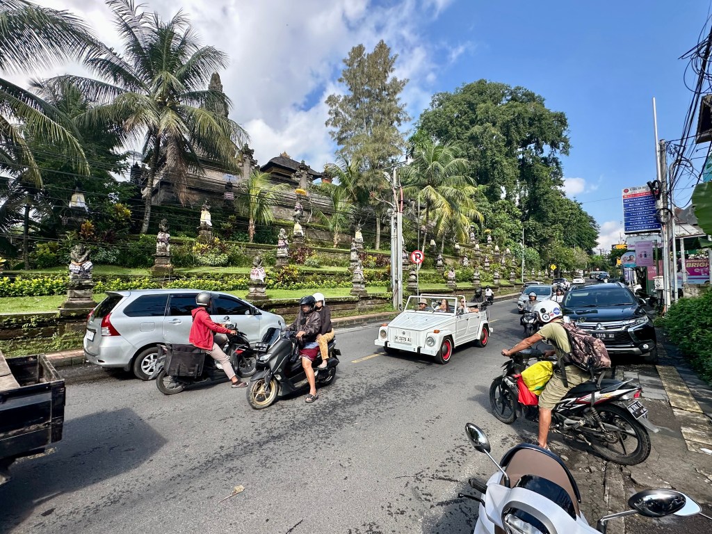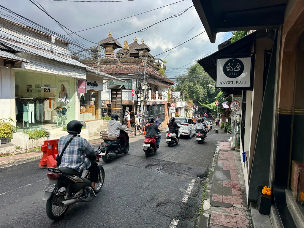 Don’t stress about the traffic. I heard someone say that the difference between Australian drivers and Bali drivers is that in Australia drivers think they own the road, but in Bali they think everyone can be on the road (walkers, dogs, cars, trucks, scooters). And I felt that. Traffic is also, with rare exceptions, quite slow. Having said that, you do need to keep your wits about you for scooters entering from the left, and there were times I was ready just to get away from traffic and exhaust fumes.