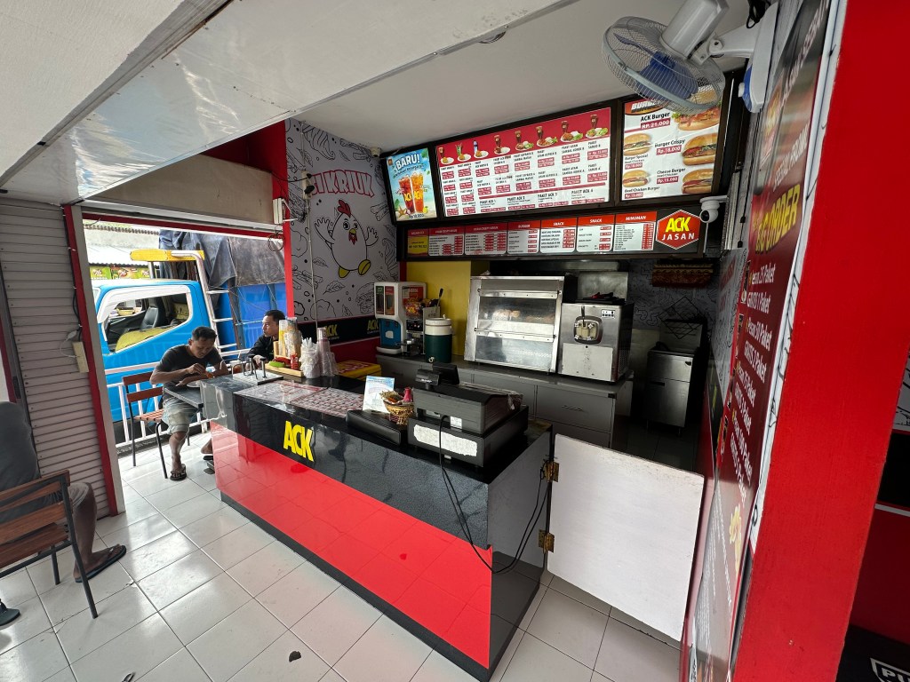 If in doubt, go to an ACK. I didn’t do this many times, but ACK fried chicken serves a pretty decent meal. In my experience, when you are tired and just need calories, it is helpful to know there is a reliable option to call on. And ACK hit the spot twice on this trip. If you are up for spicy, 24k ($2.30 AUD, $1.50 USD) for cold jasmine tea, rice, chicken and Sambal Matah (“Paket Geprack B Samal Matah”) is hard to beat.