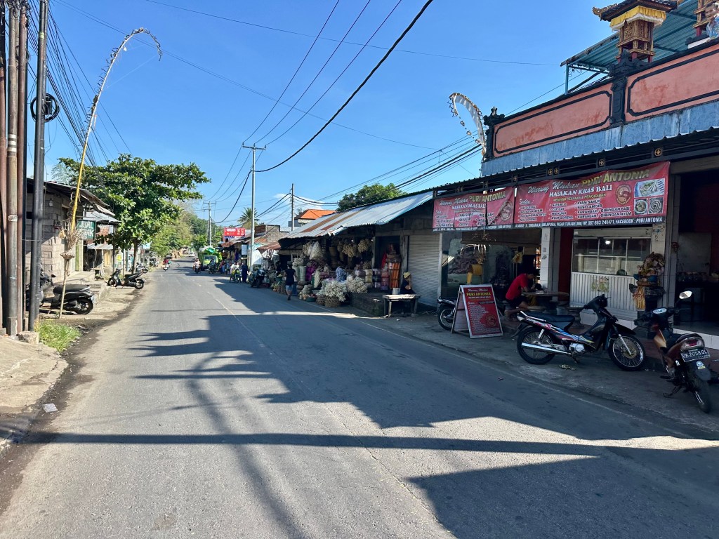 It also was interesting to get the first opportunity to travel through Balinese villages and to get a sense of what they were like – including the stores and roadside food options that were available. Over the course of the trip I got much better at knowing what to look for depending on need (e.g. food, drink) and what was a little unique (e.g. coffee). The most important thing to know is that you do not need to stress about hydration – there will be somewhere in every village you can grab extra water if needed.